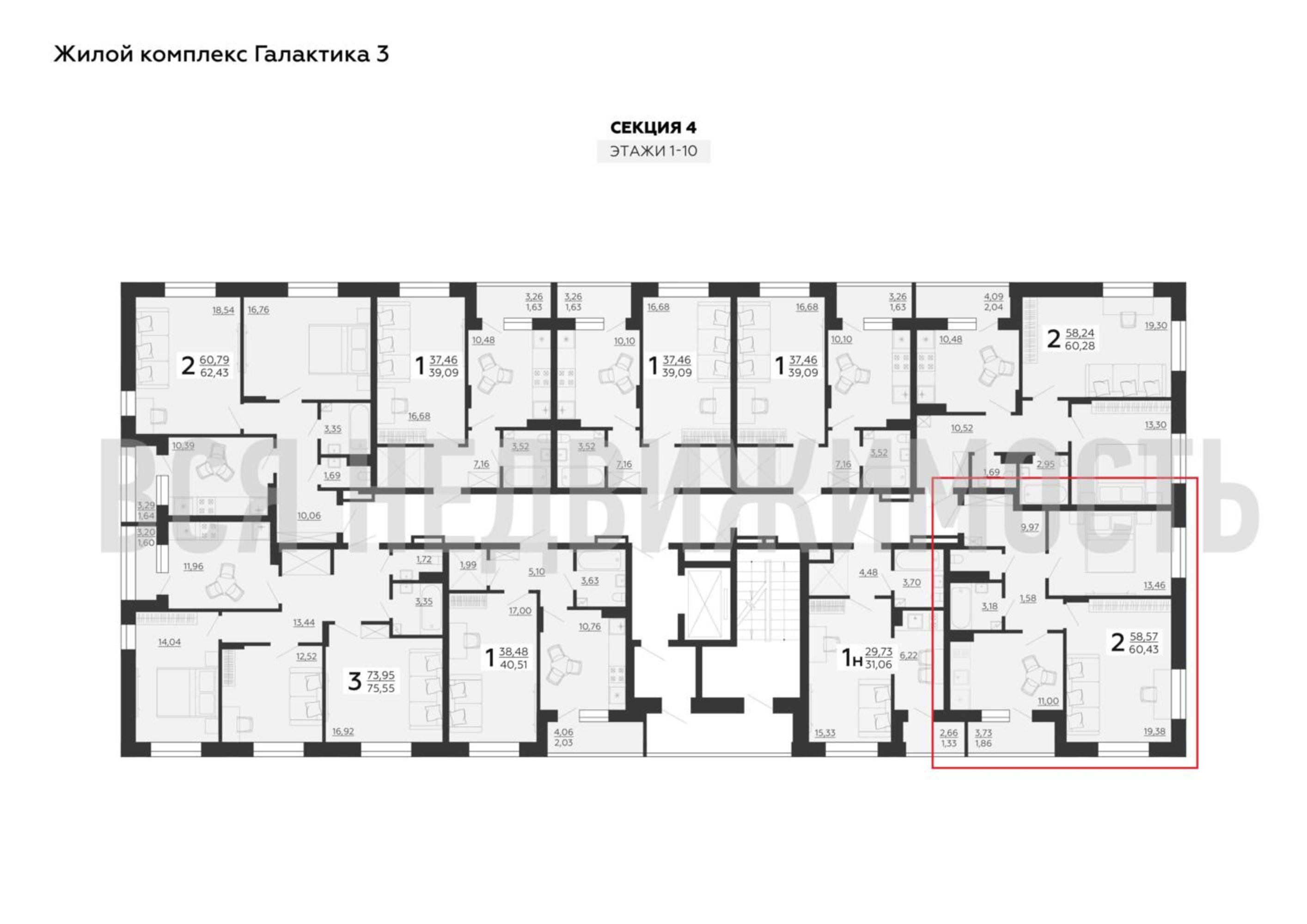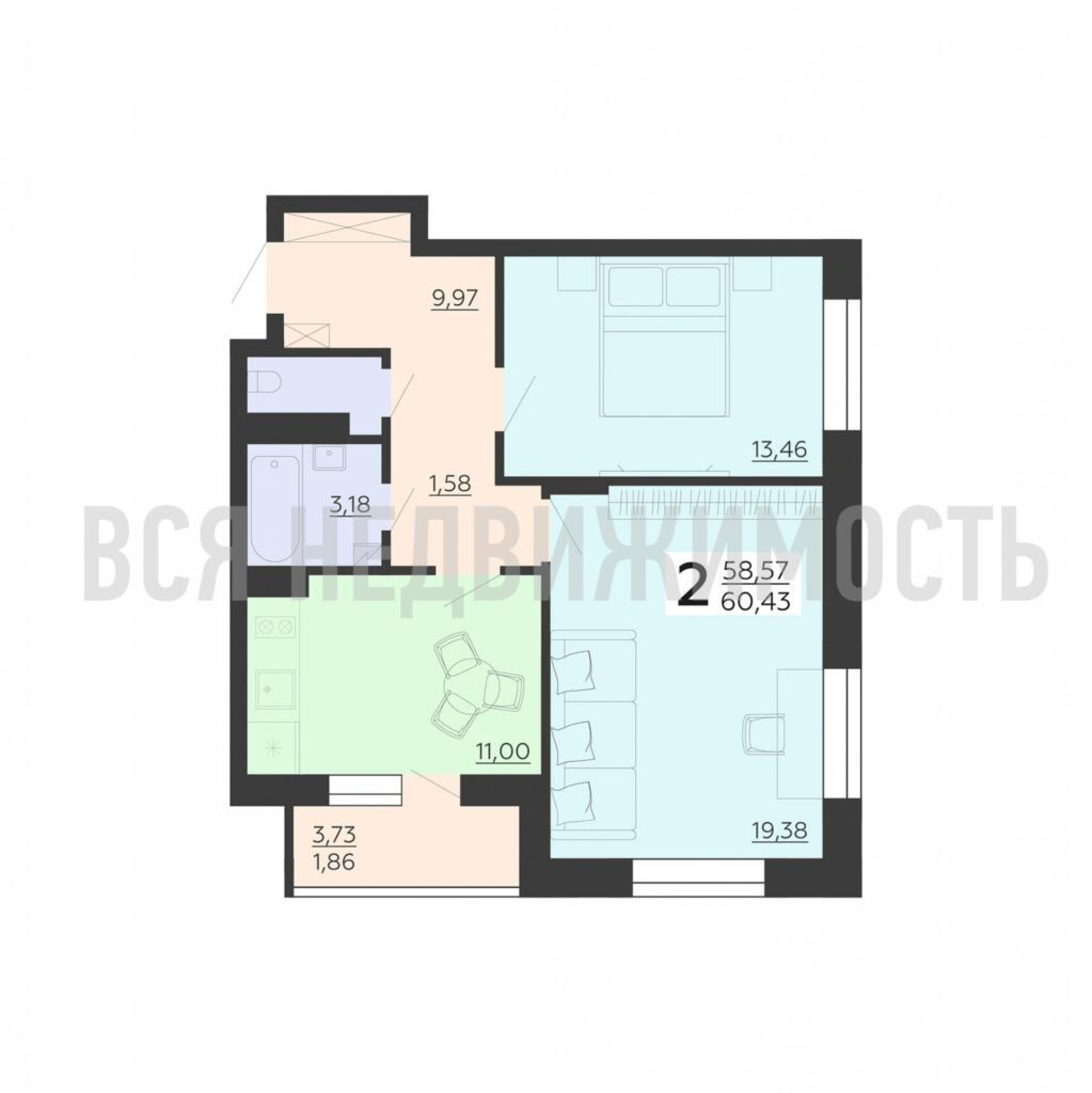 2-комнатная квартира, 60.43 м² 7/8 этаж ID объекта 100073171
