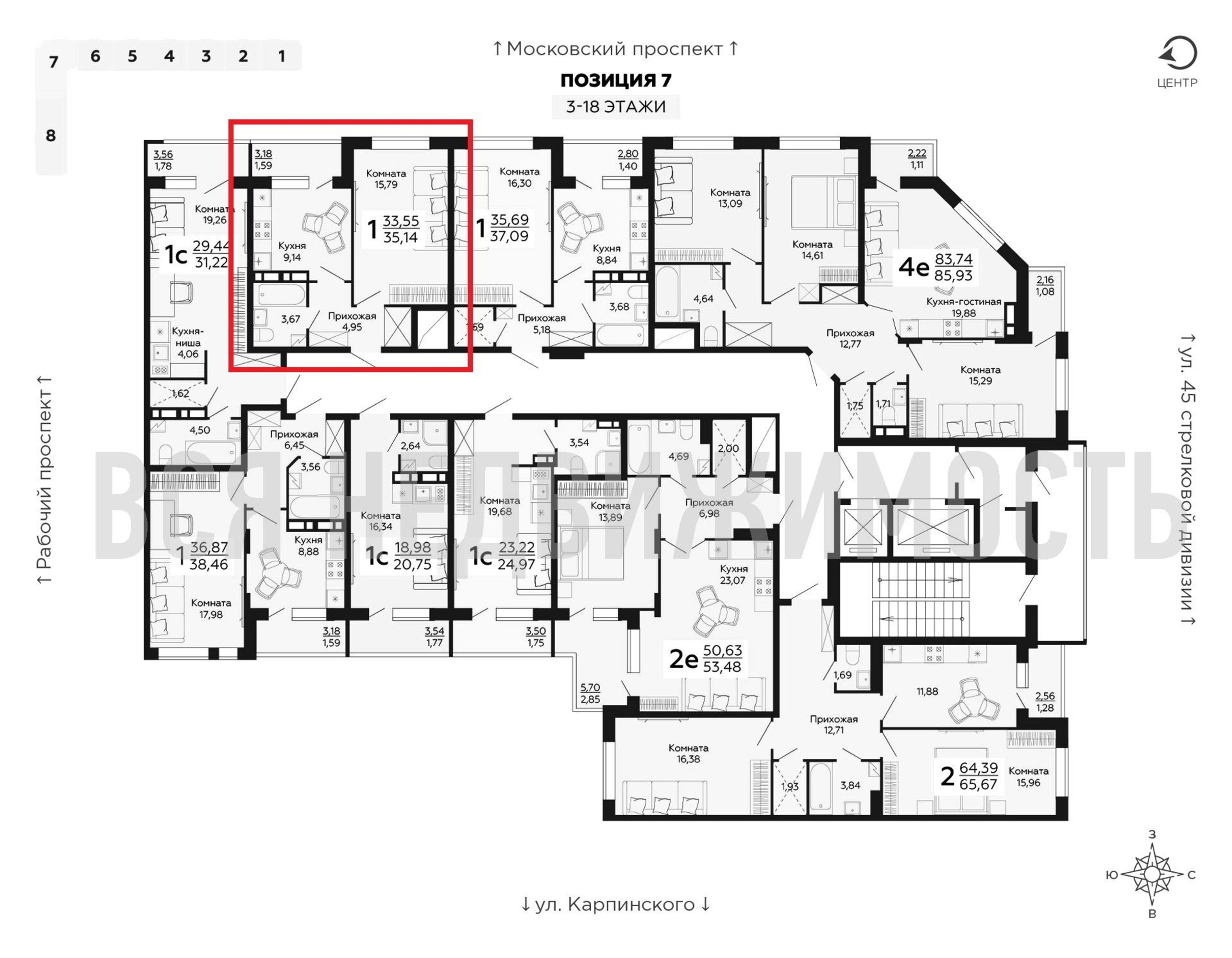 1-комнатная квартира, 35.14 м² 4/18 этаж ID объекта 100073295