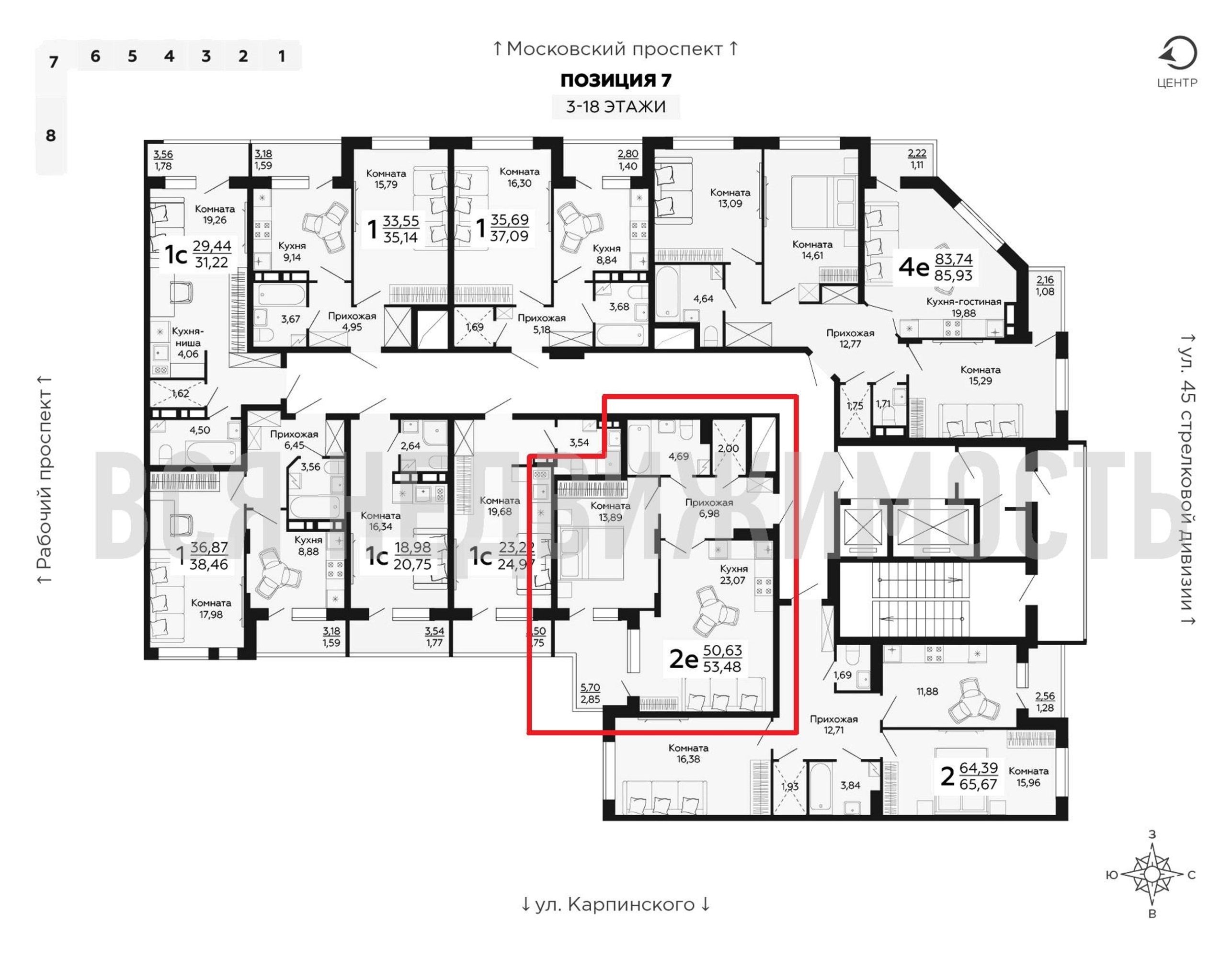 1-комнатная квартира, 53.48 м² 18/18 этаж ID объекта 100073416