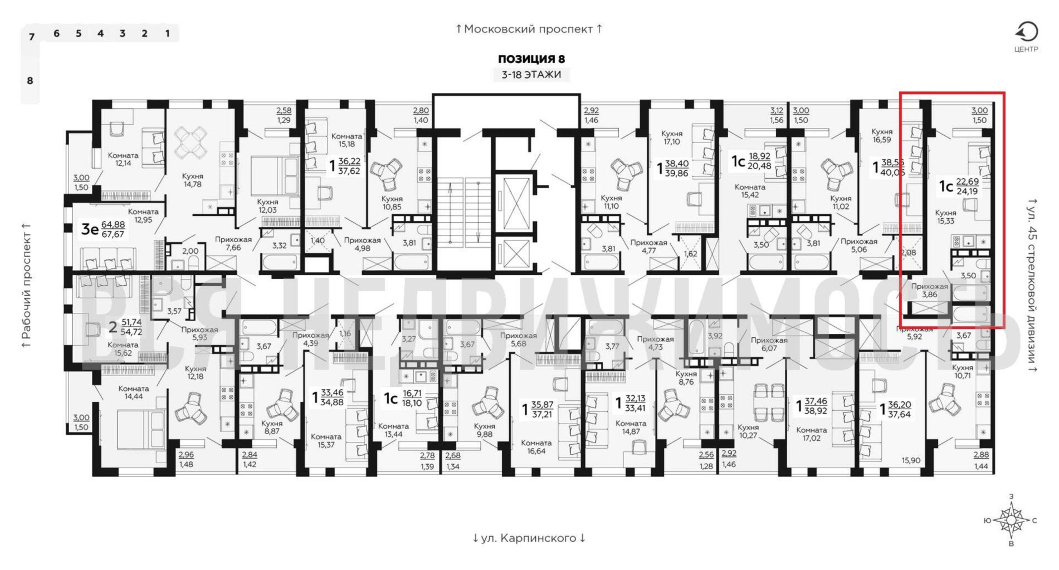 Квартиры-студии, 24.19 м² 4/18 этаж ID объекта 100073440