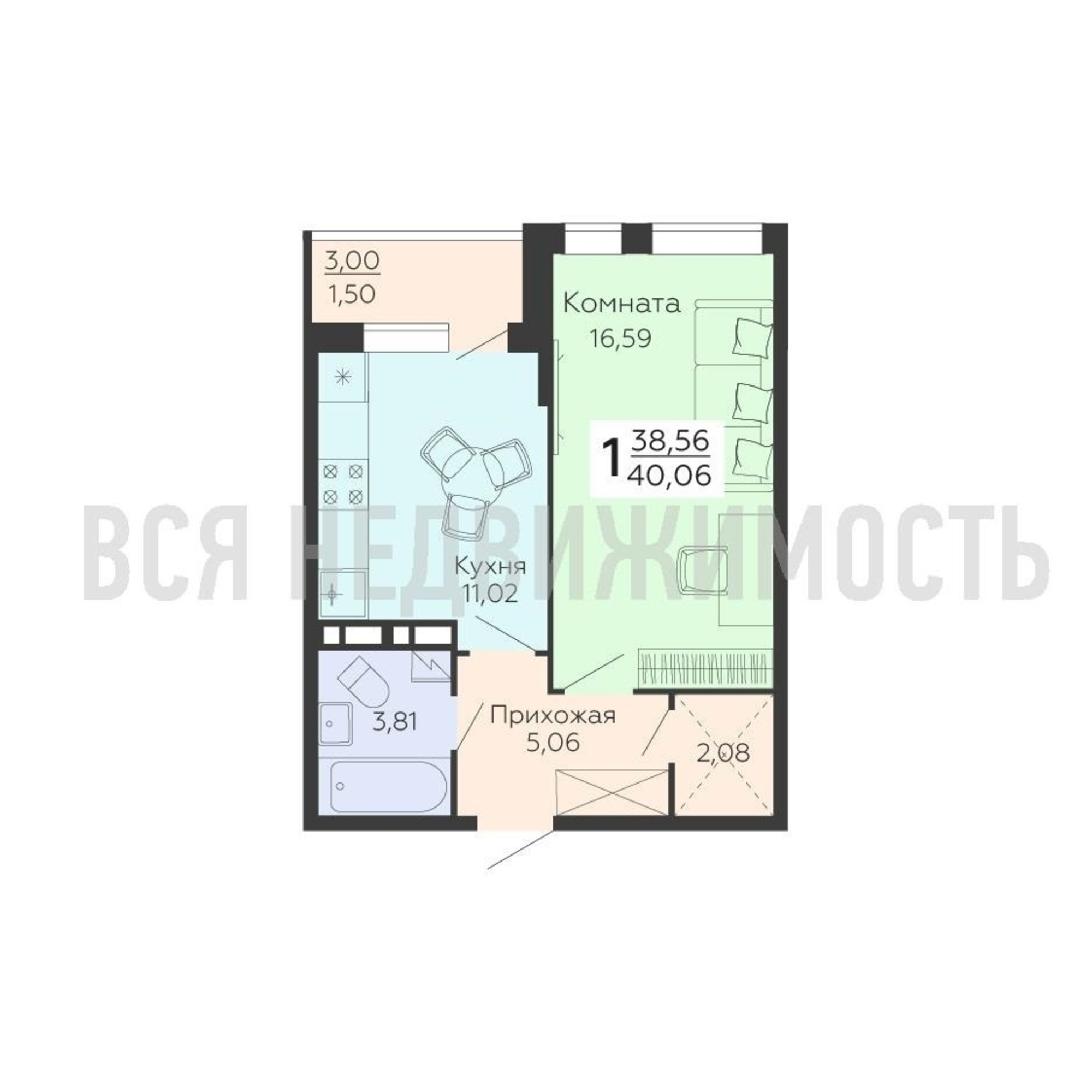 Общая площадь38.56 м²