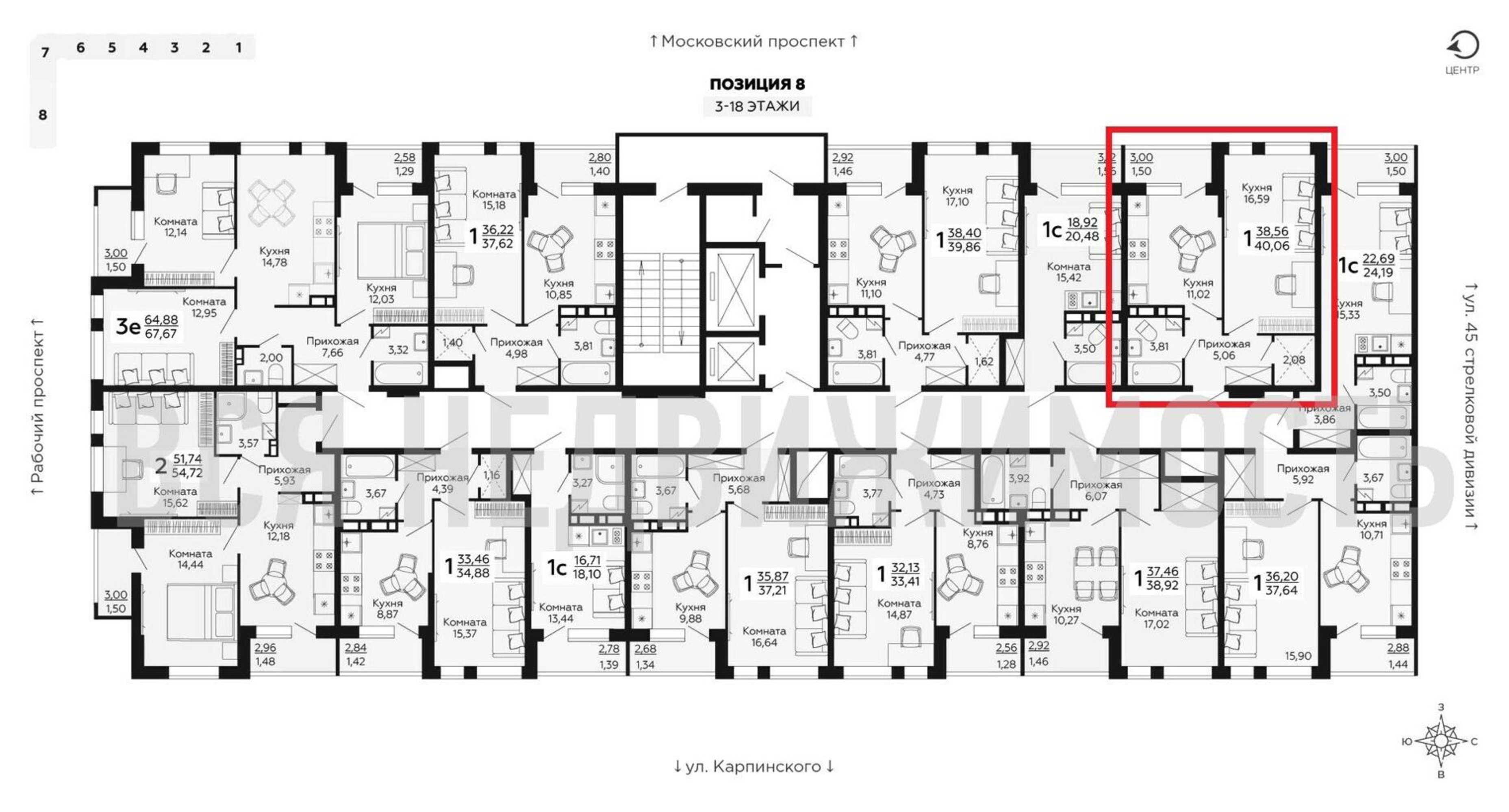1-комнатная квартира, 40.06 м² 14/18 этаж ID объекта 100073569