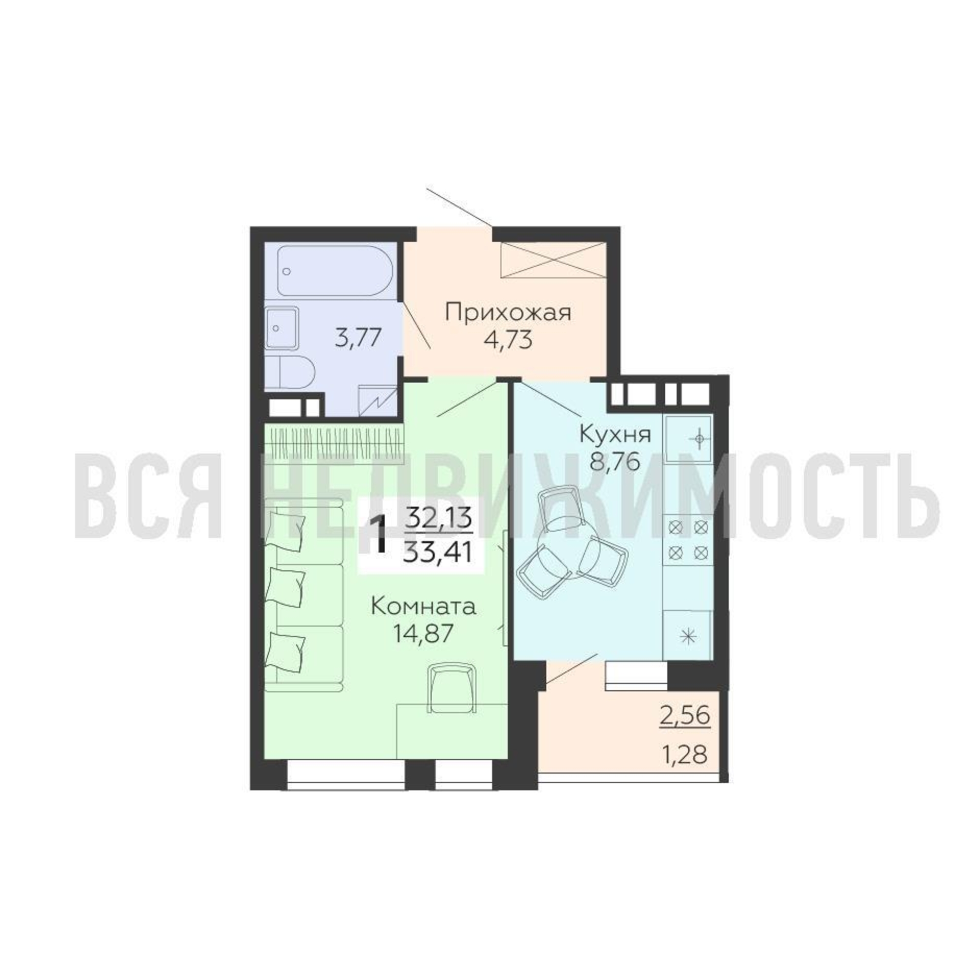 1-комнатная квартира, 33.41 м² 15/18 этаж ID объекта 100073586
