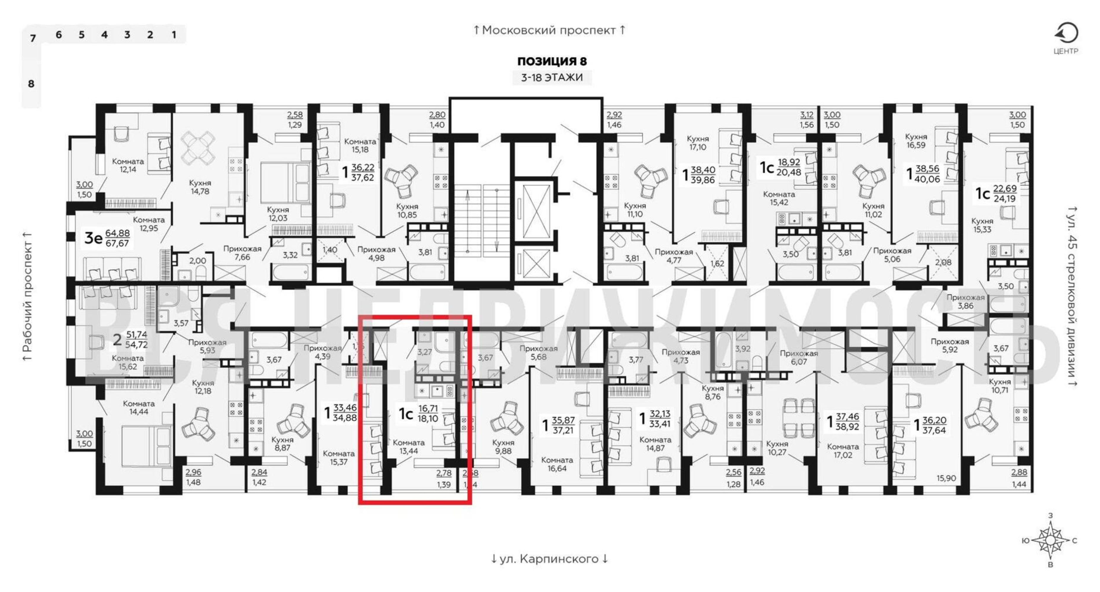 Квартиры-студии, 18.10 м² 18/18 этаж ID объекта 100073627
