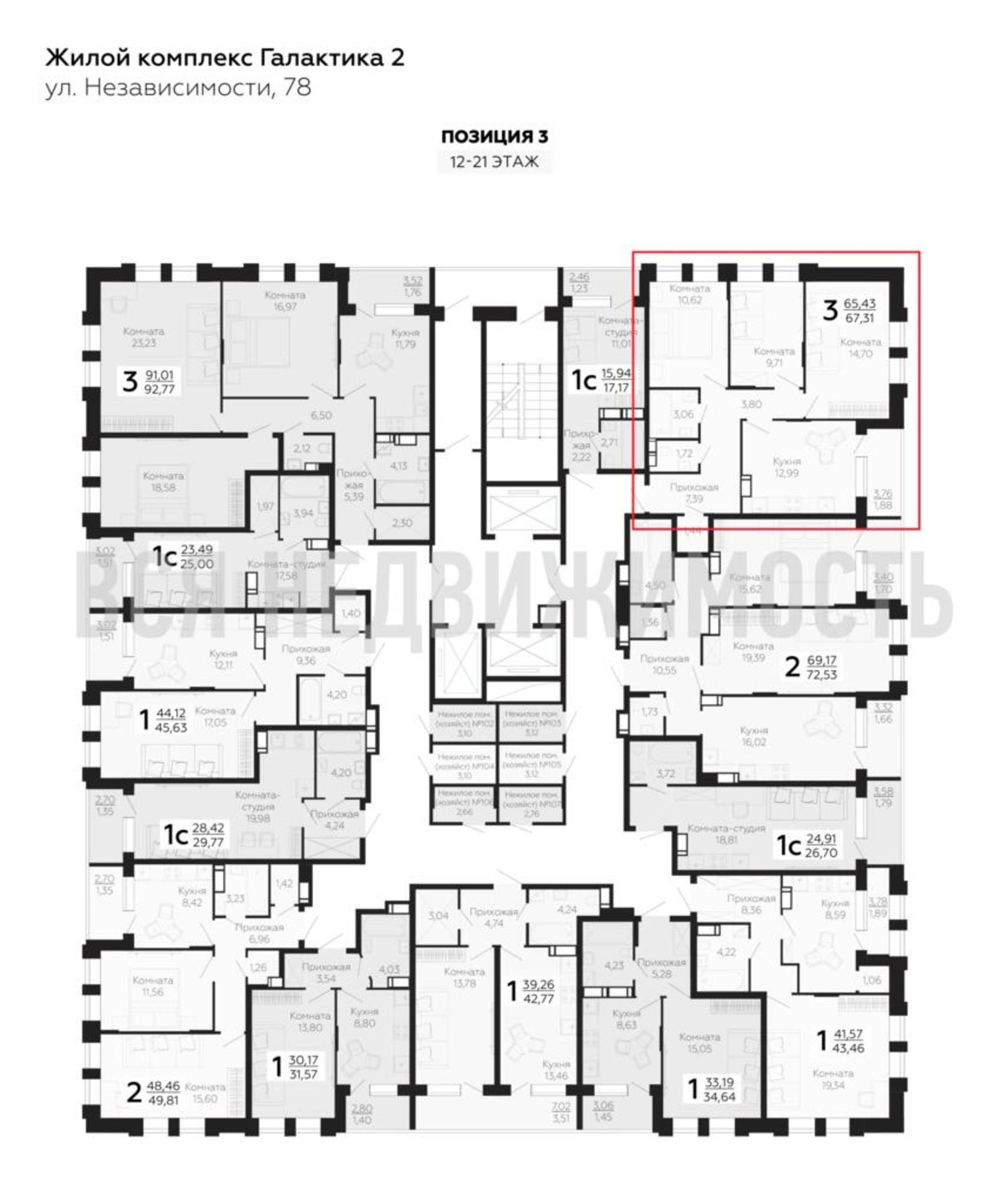 3-комнатная квартира, 67.31 м² 19/21 этаж ID объекта 100074622