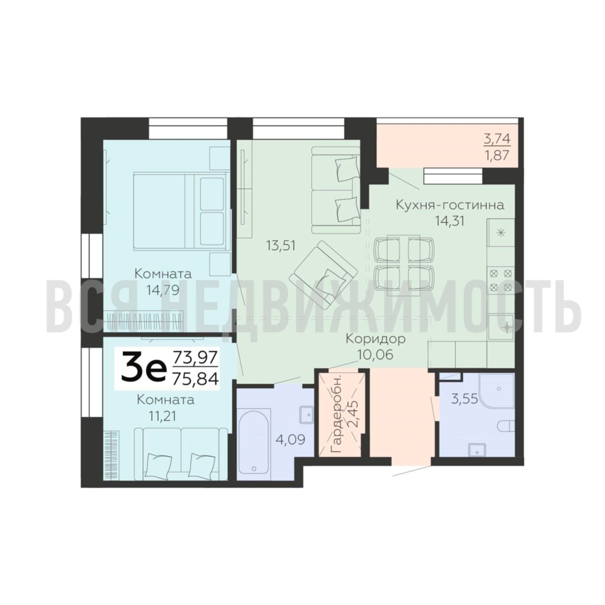 2-комнатная квартира, 75.84 м² 21/24 этаж ID объекта 100075239
