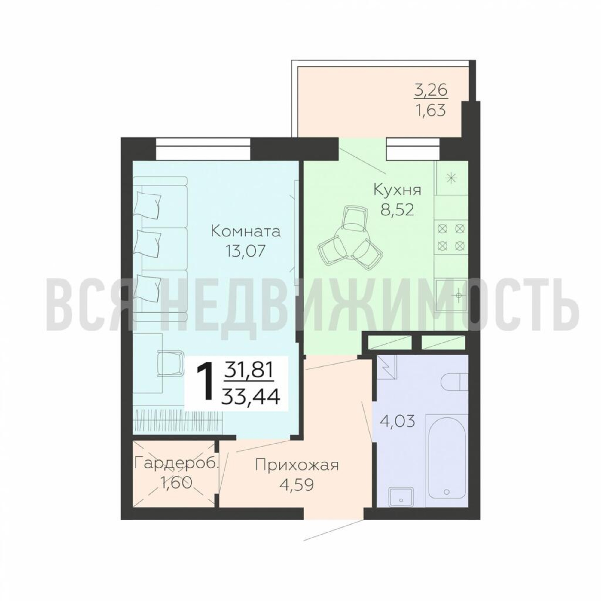 Строительная площадь33.44 м²