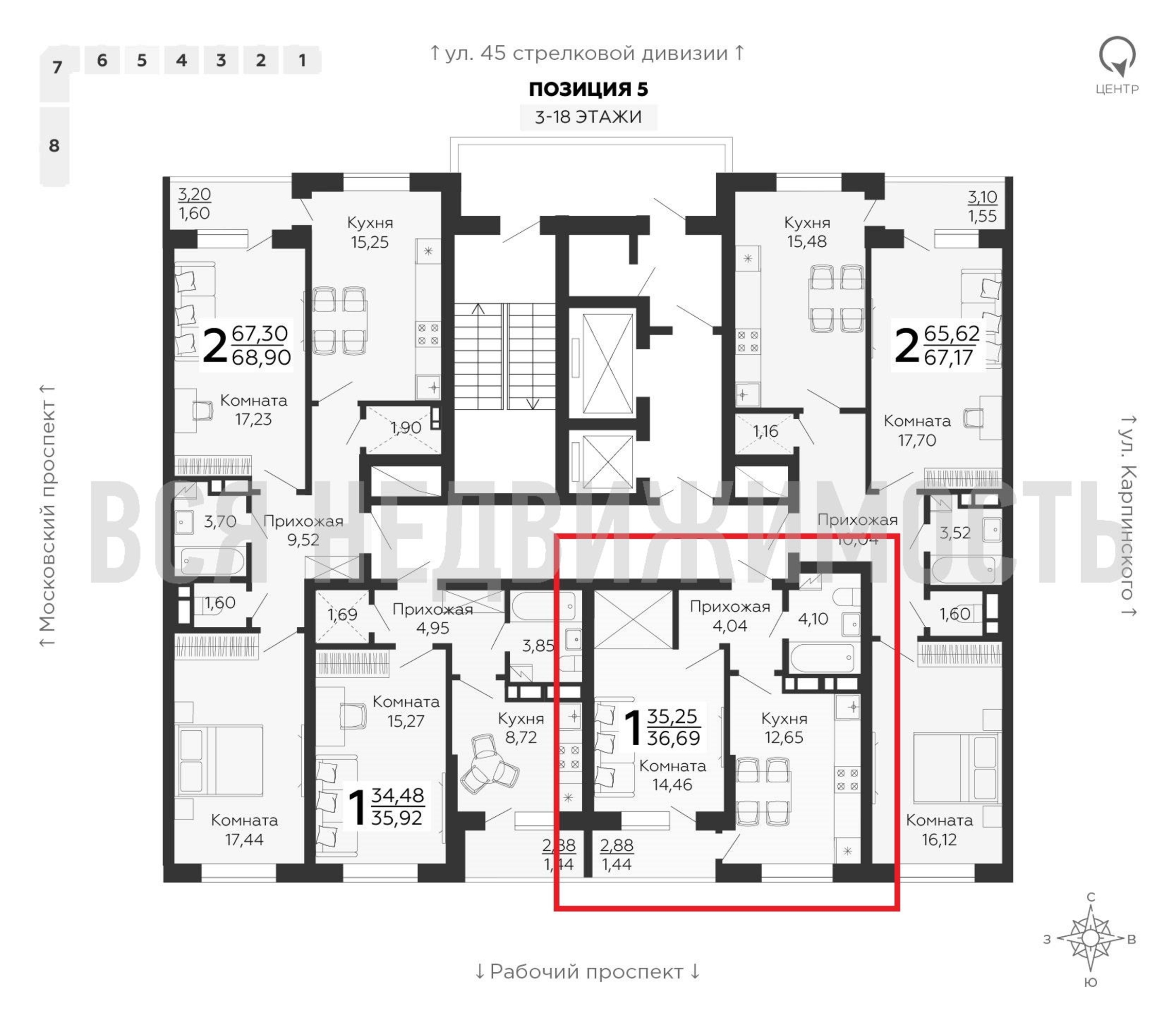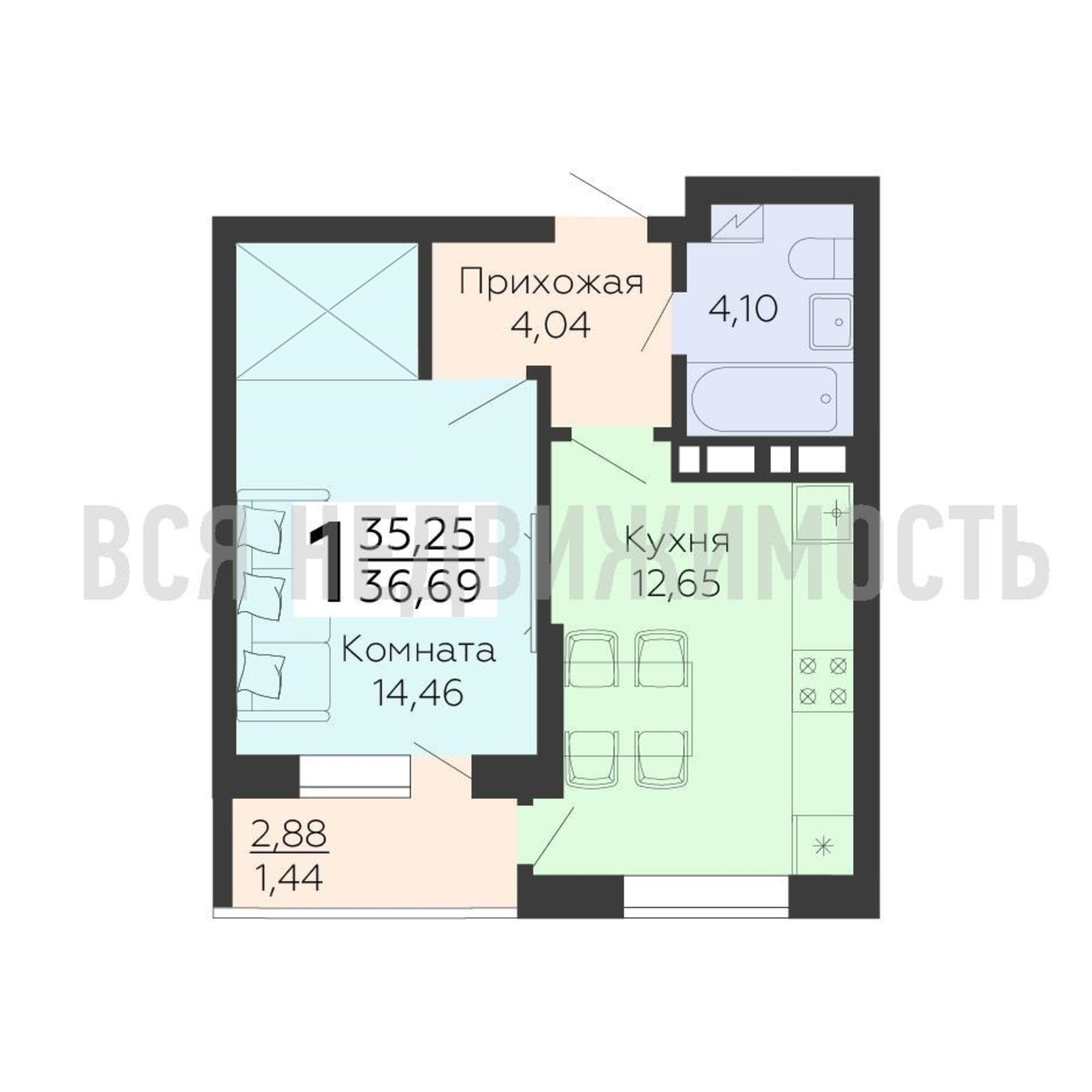 1-комнатная квартира, 36.69 м² 17/18 этаж ID объекта 100075624