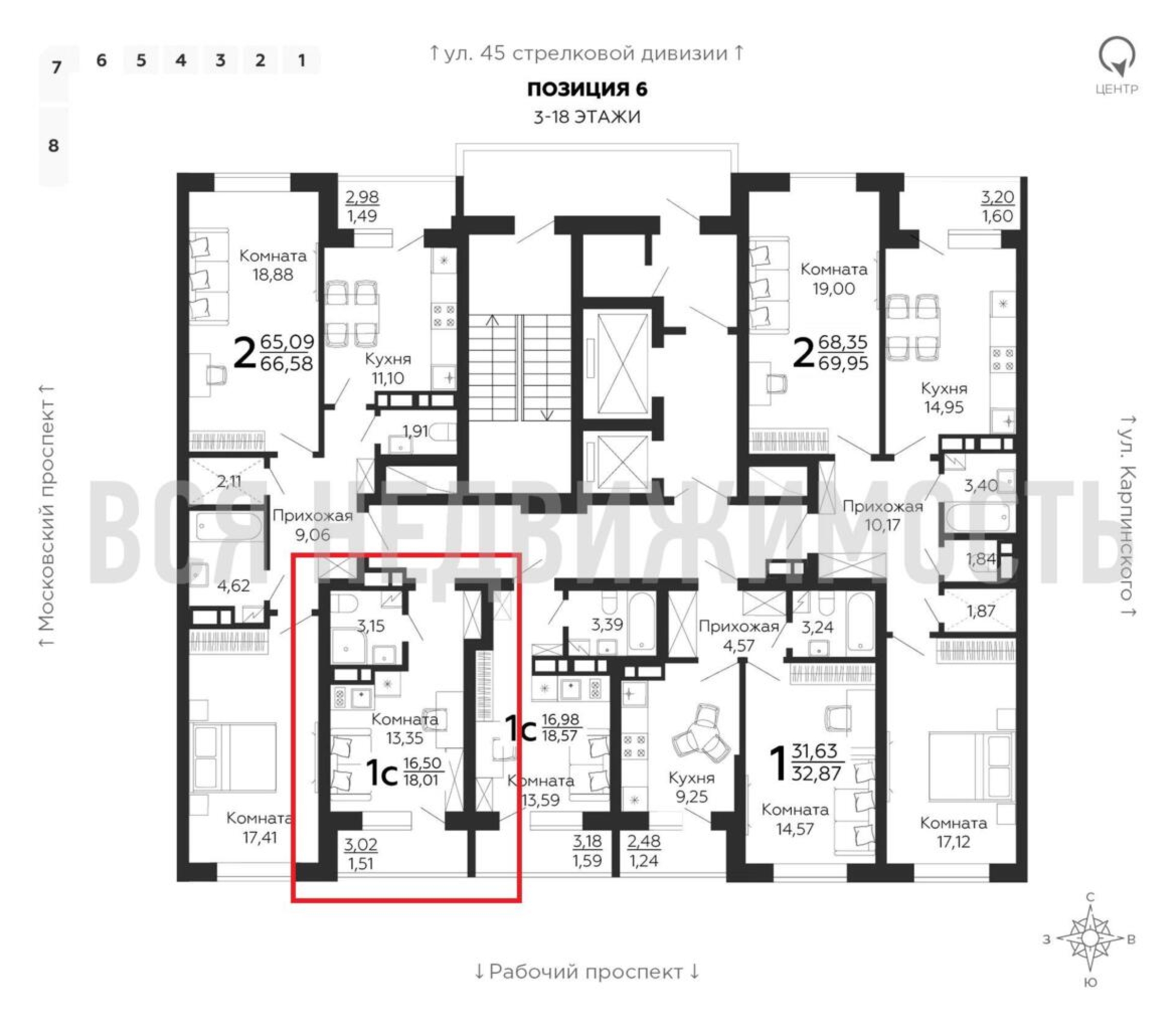 Квартиры-студии, 18.01 м² 15/18 этаж ID объекта 100075694
