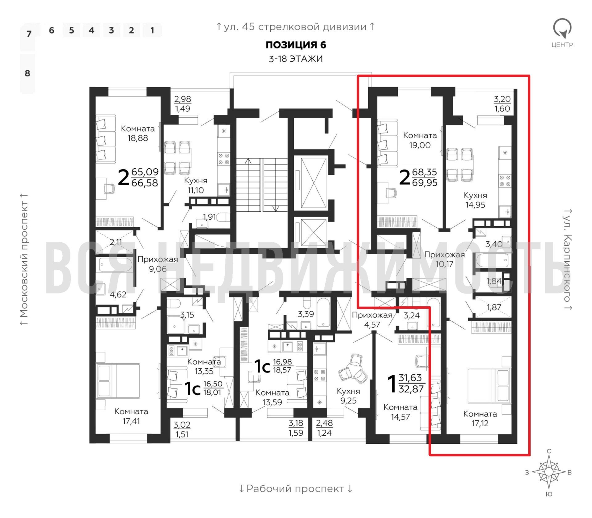 2-комнатная квартира, 69.95 м² 16/18 этаж ID объекта 100075696