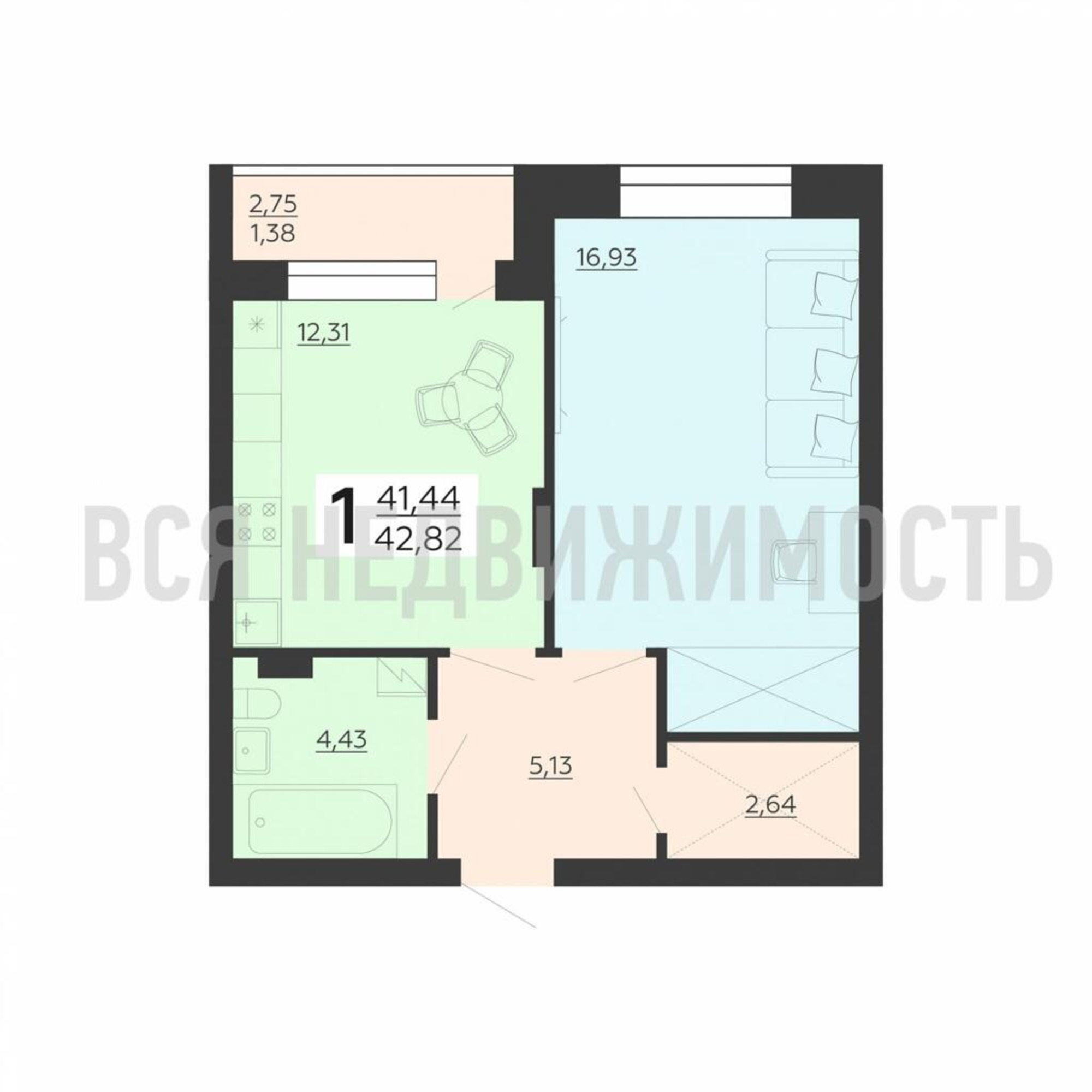 Строительная площадь42.82 м²