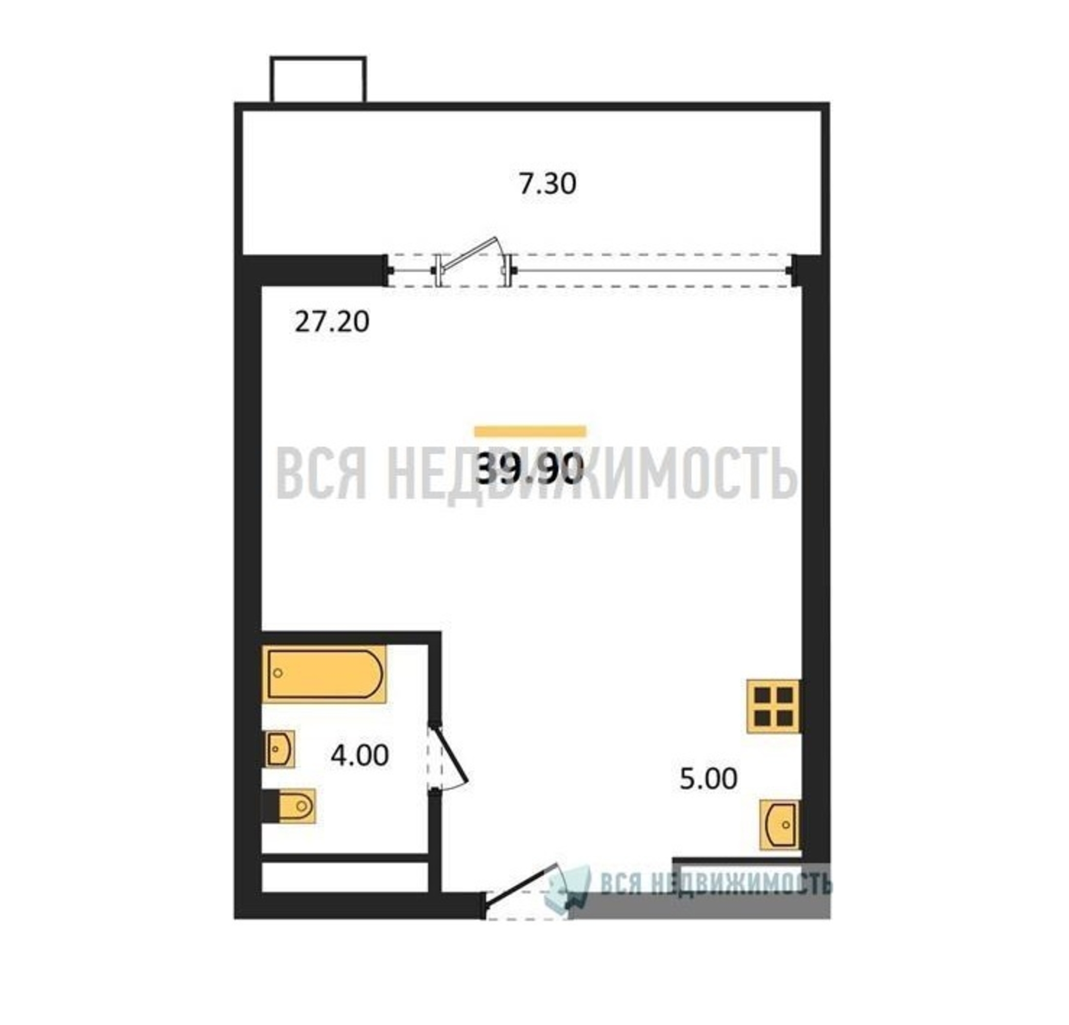 Квартиры-студии, 39.90 м² 6/9 этаж ID объекта 100075977