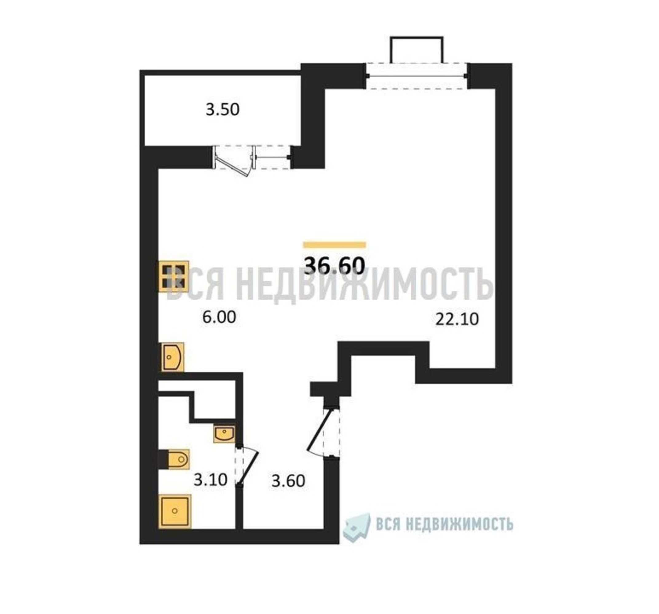 Квартиры-студии, 36.60 м² 7/15 этаж ID объекта 100076003