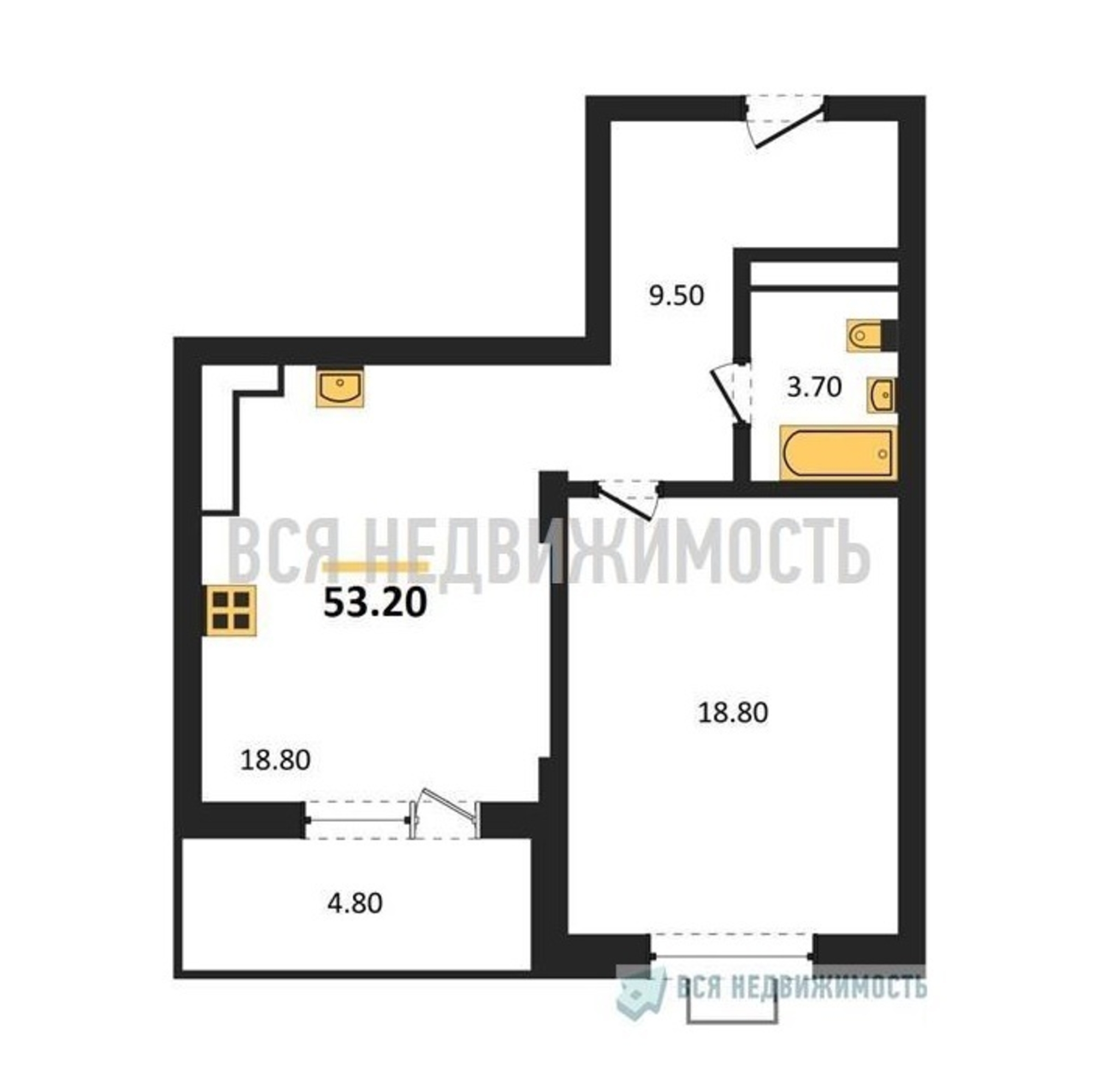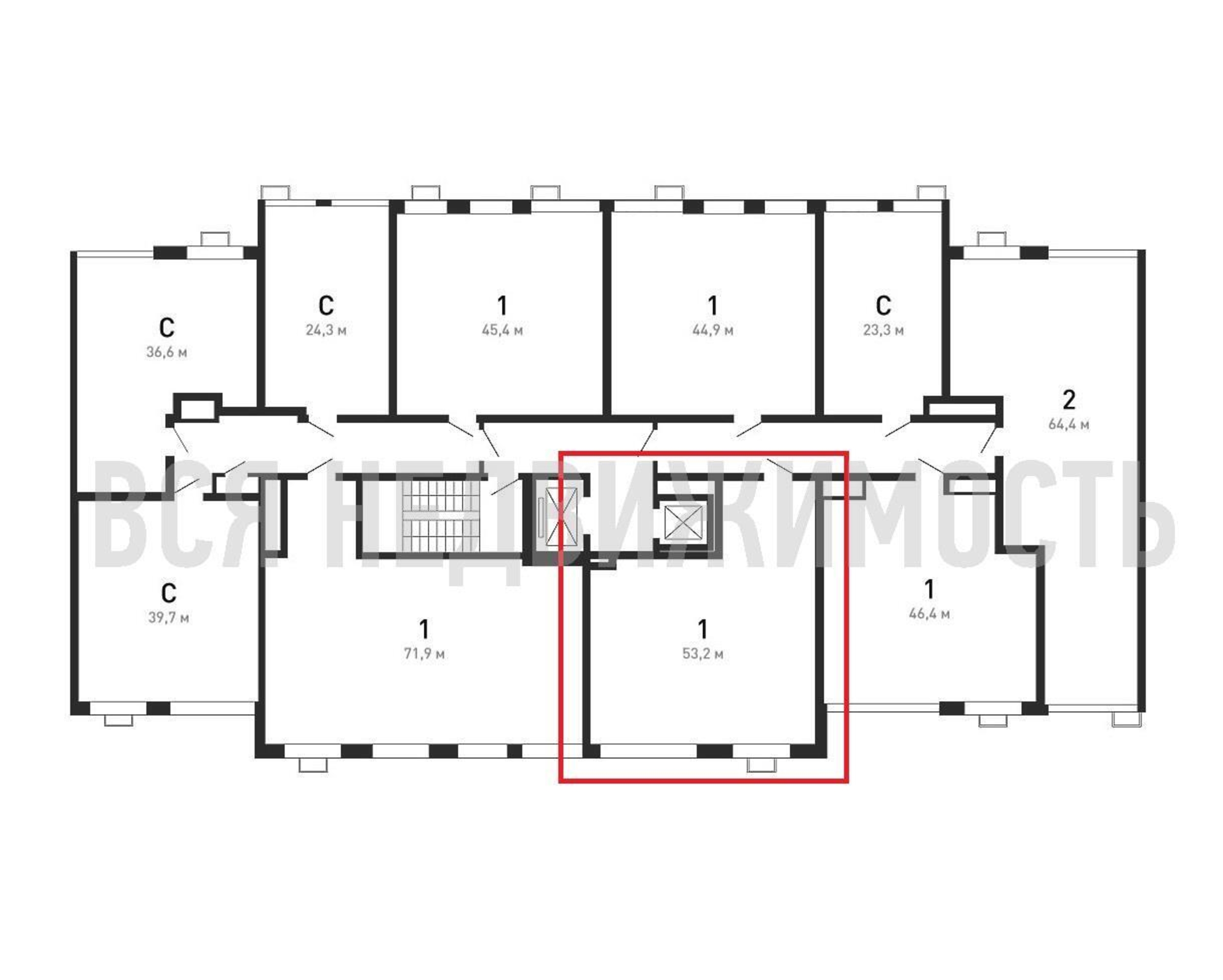 1-комнатная квартира, 53.20 м² 5/15 этаж ID объекта 100076048