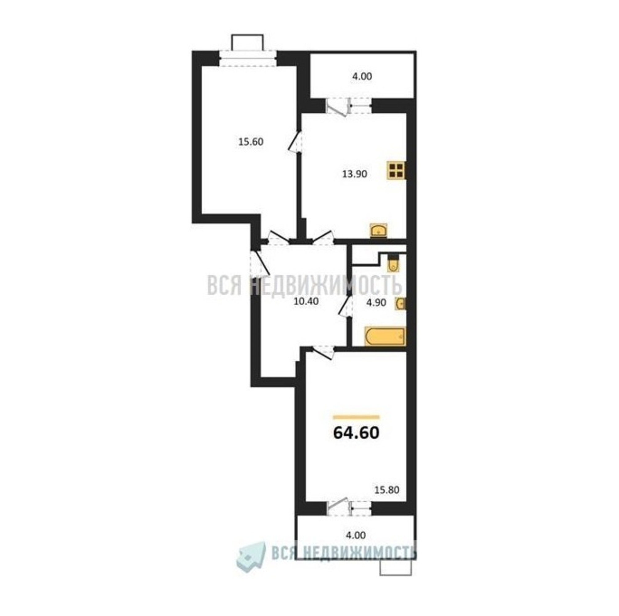 Строительная площадь64.60 м²