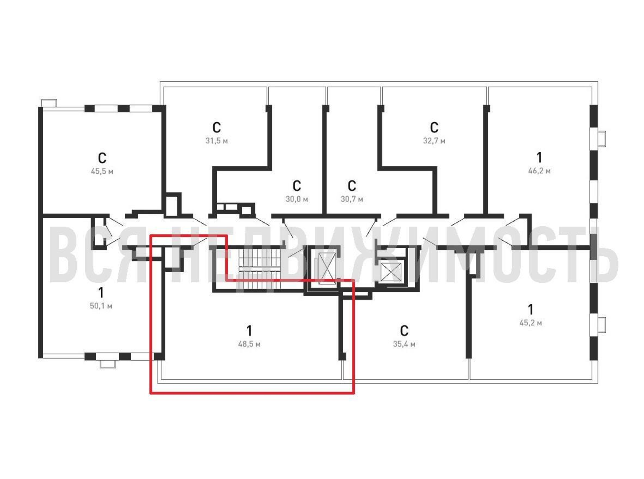 1-комнатная квартира, 48.50 м² 14/15 этаж ID объекта 100076120