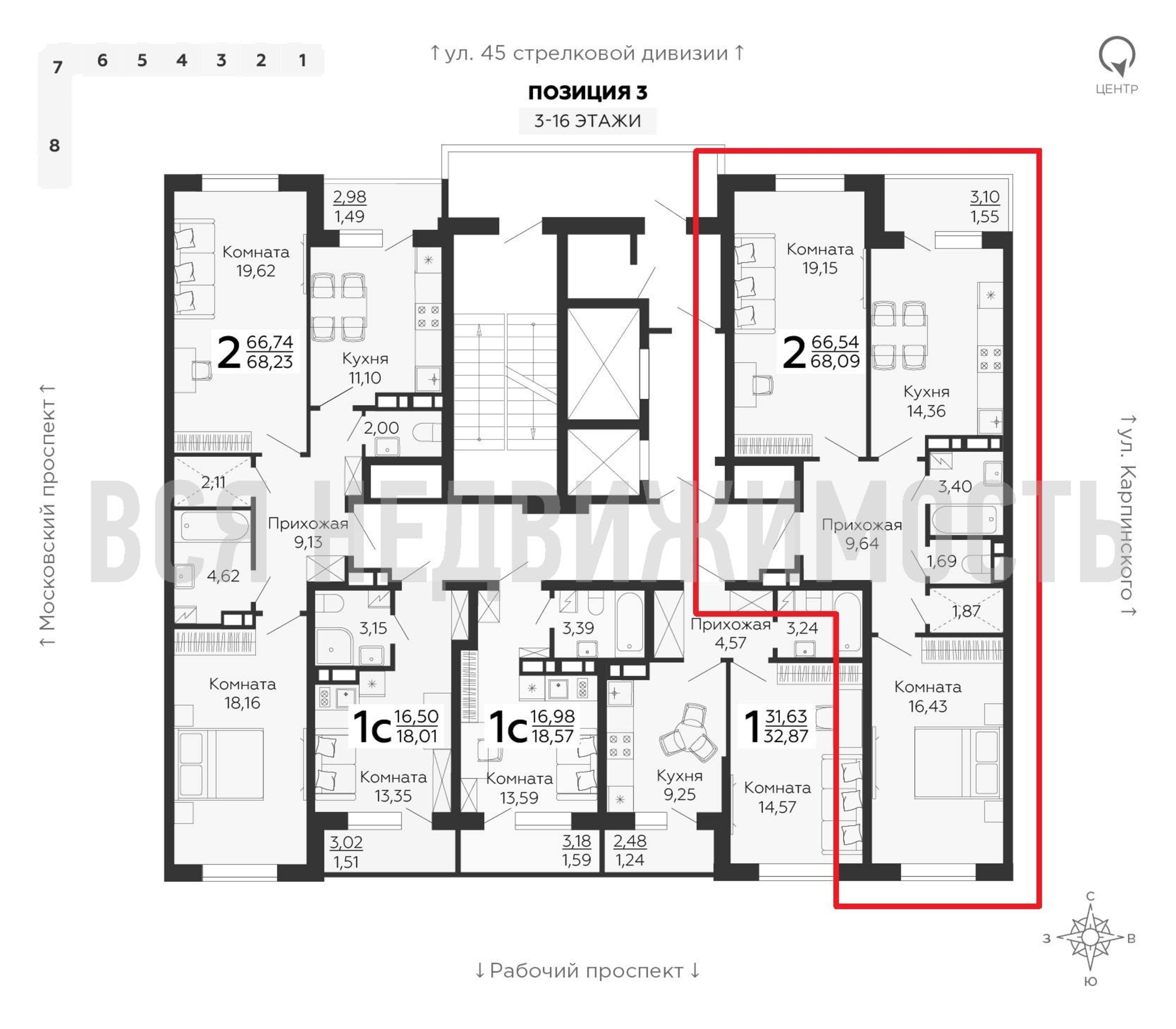 2-комнатная квартира, 68.09 м² 15/16 этаж ID объекта 100076210