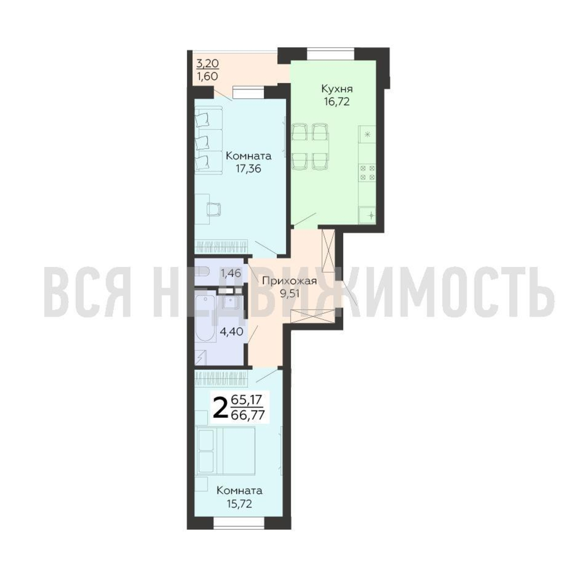 2-комнатная квартира, 66.77 м² 8/18 этаж ID объекта 100076249
