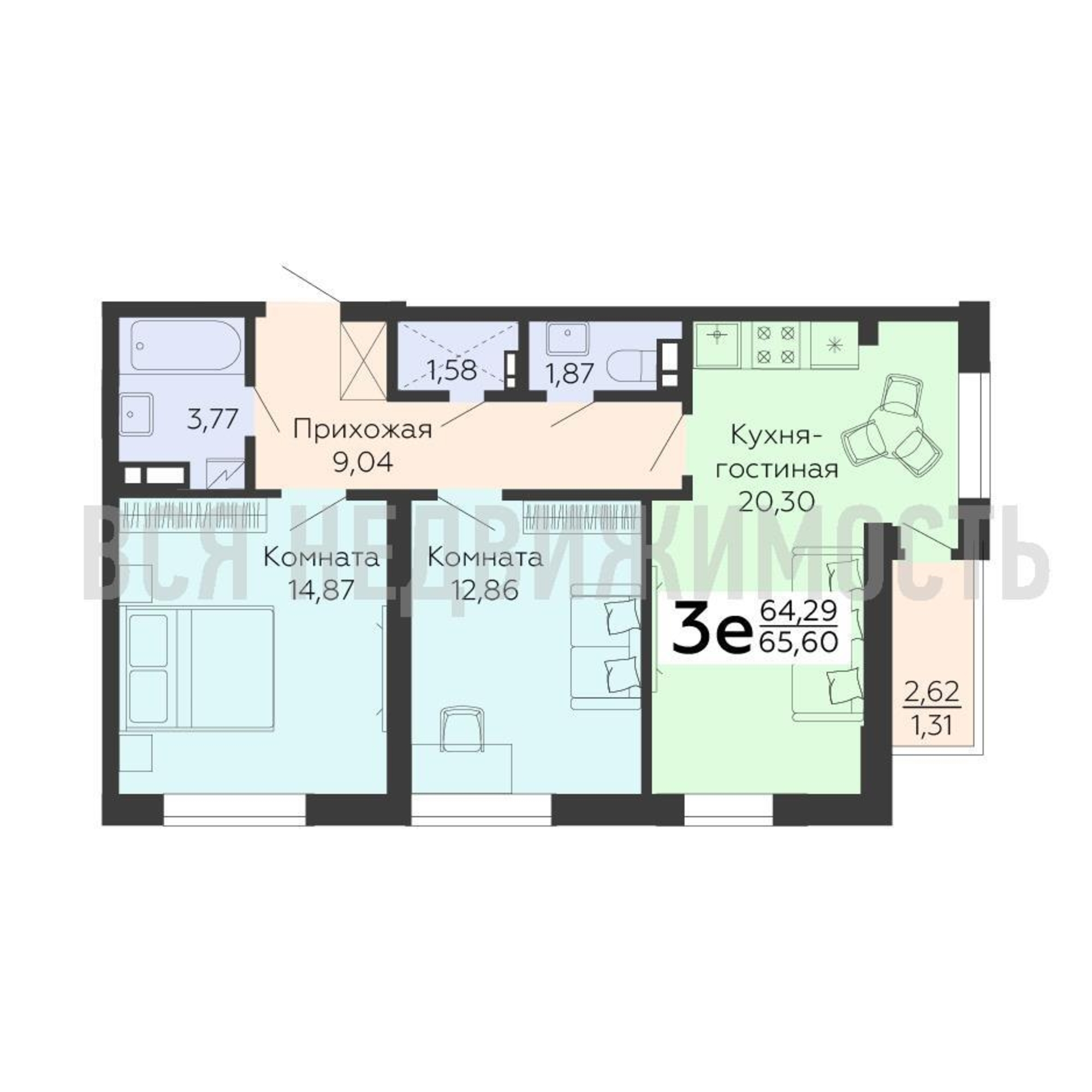 2-комнатная квартира, 65.60 м² 12/14 этаж ID объекта 100076327