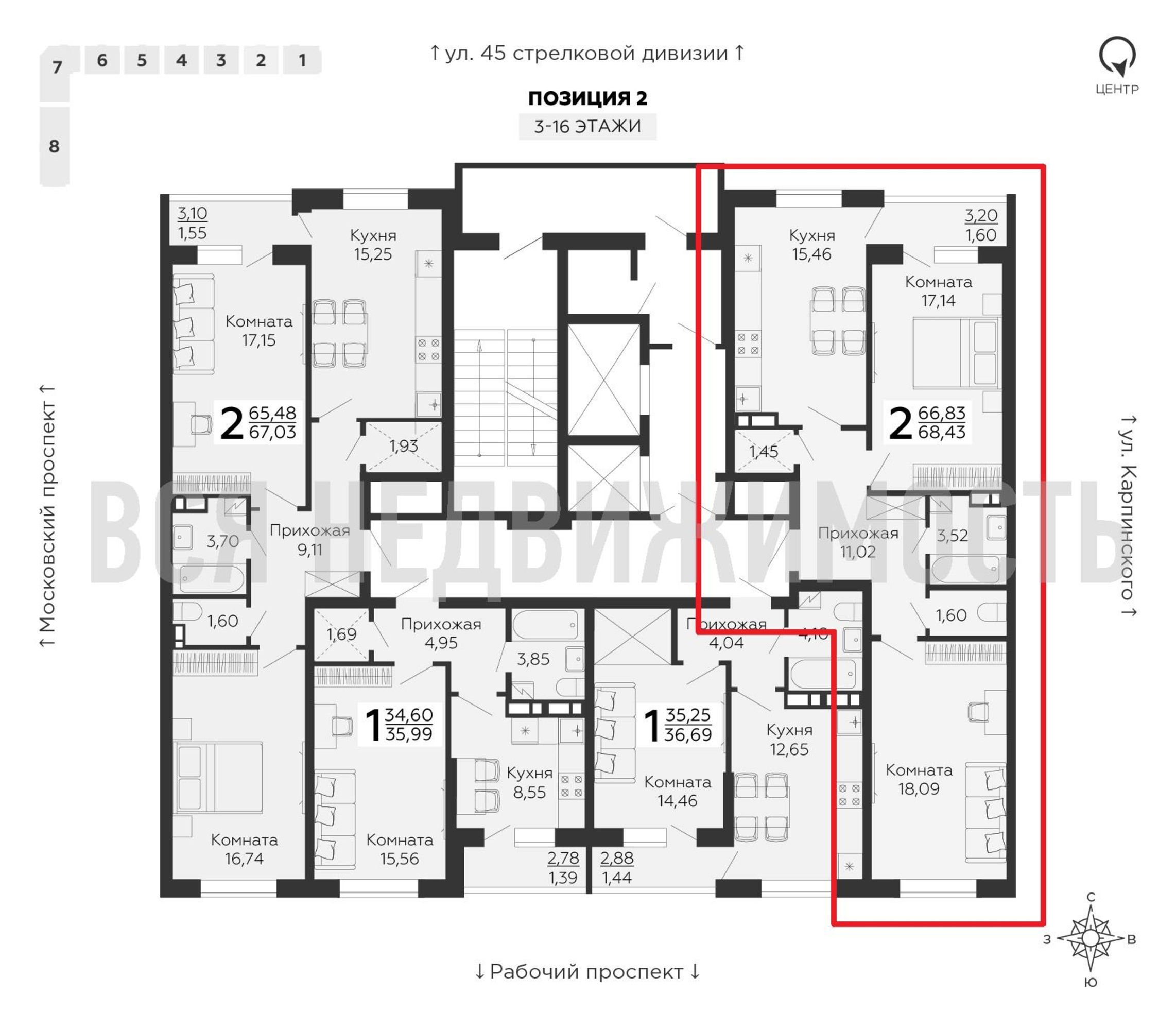 2-комнатная квартира, 68.43 м² 12/16 этаж ID объекта 100076374