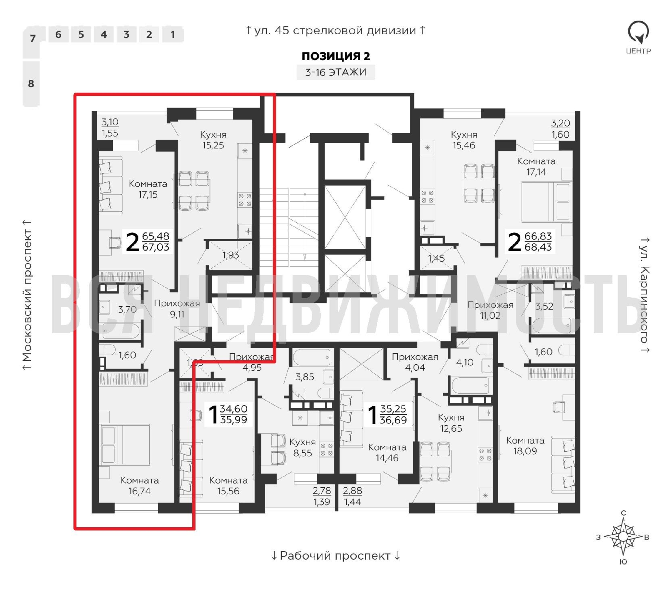 2-комнатная квартира, 67.03 м² 15/16 этаж ID объекта 100076389