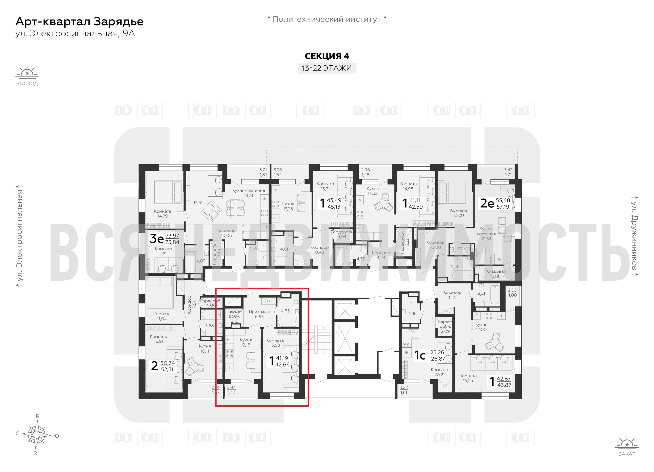 1-комнатная квартира, 42.66 м² 16/24 этаж ID объекта 100076802