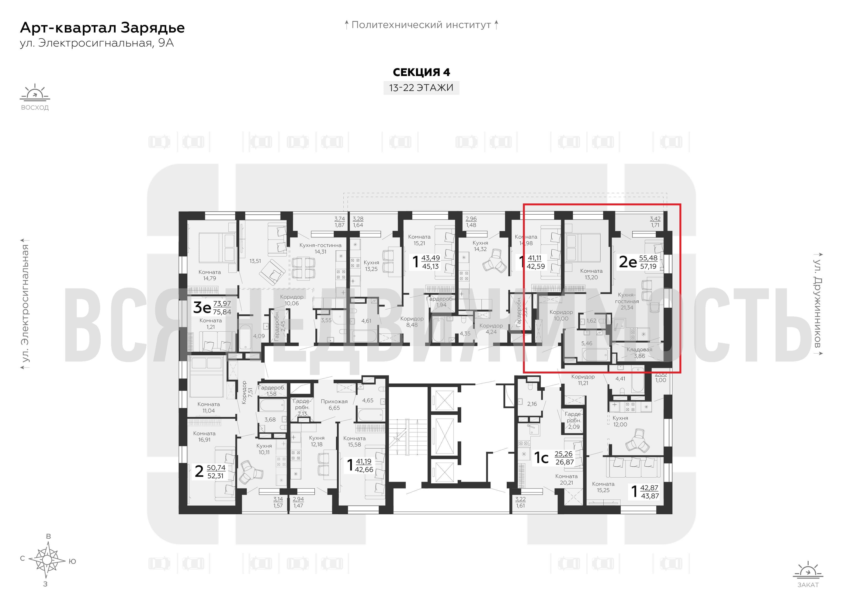 1-комнатная квартира, 57.19 м² 22/24 этаж ID объекта 100076815