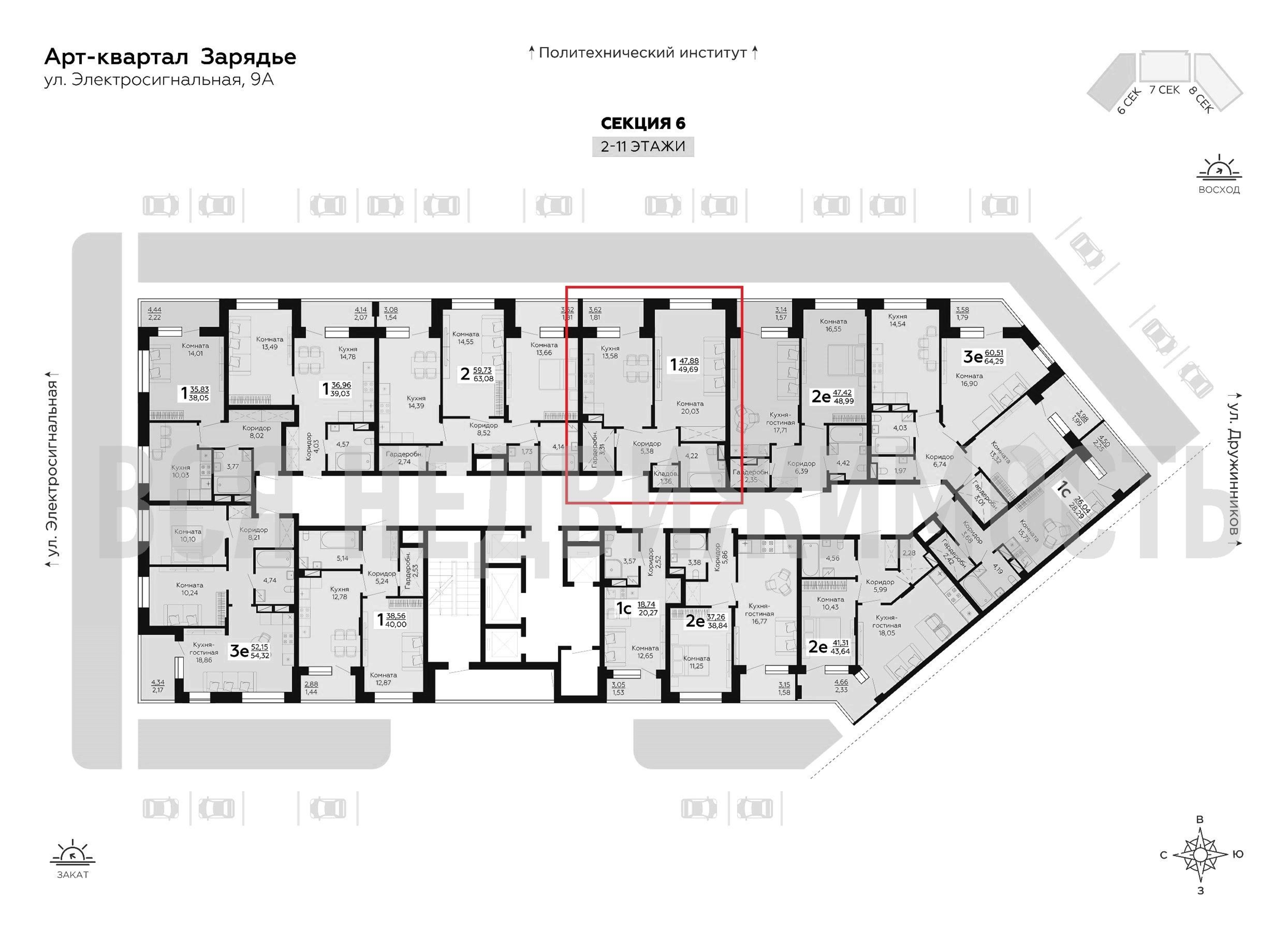 1-комнатная квартира, 49.69 м² 2/25 этаж ID объекта 100076846
