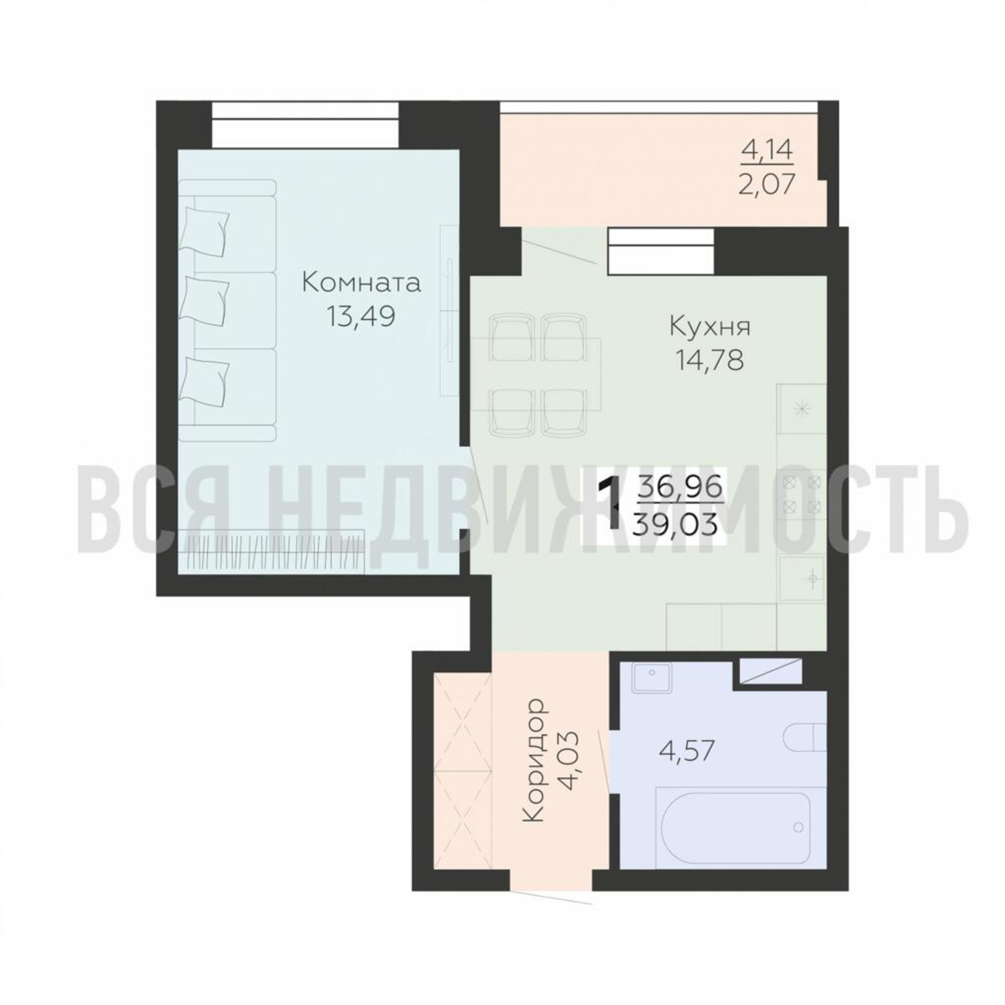 Общая площадь36.96 м²