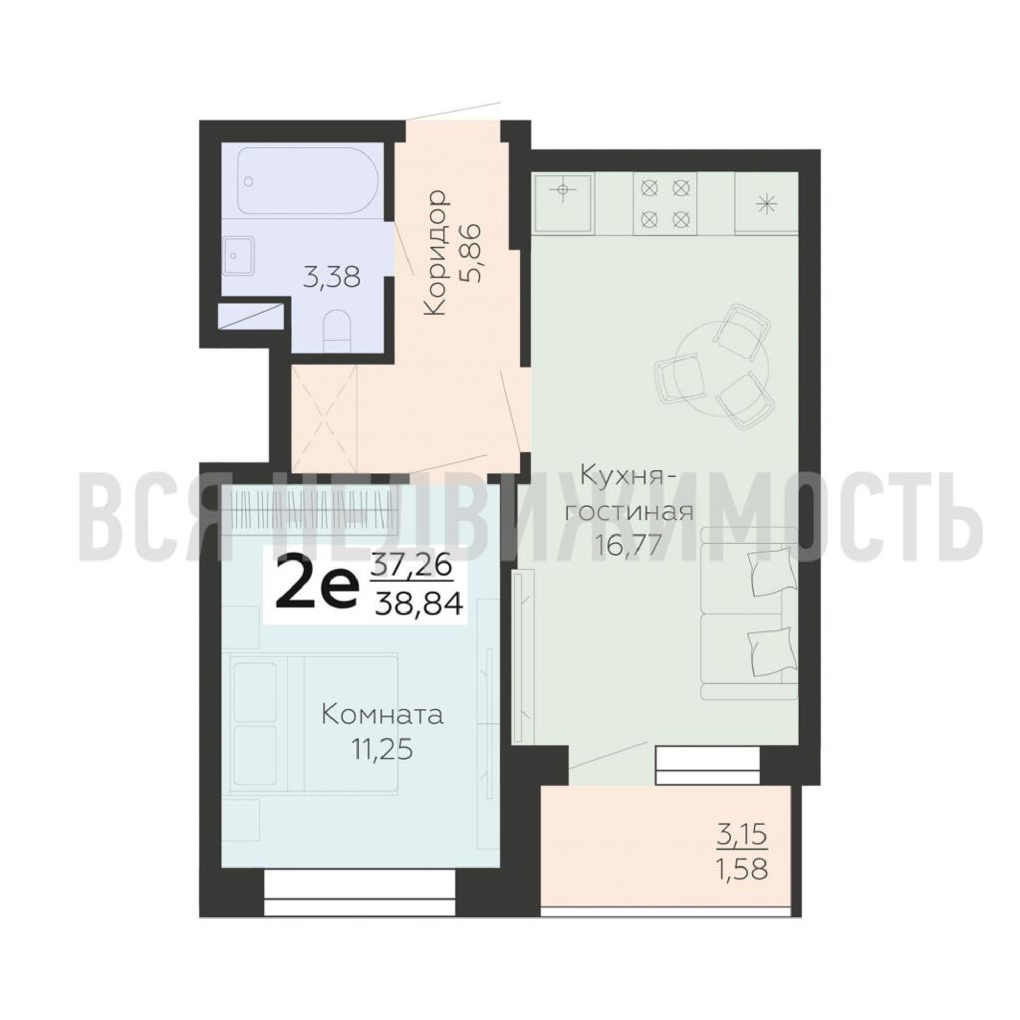 Строительная площадь38.84 м²