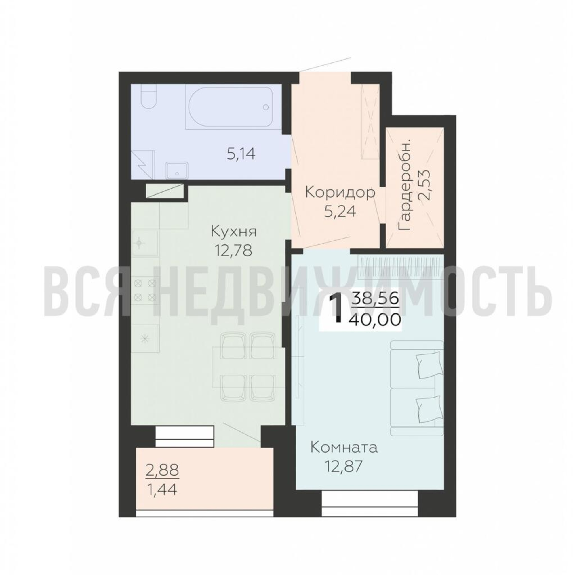 Общая площадь38.56 м²