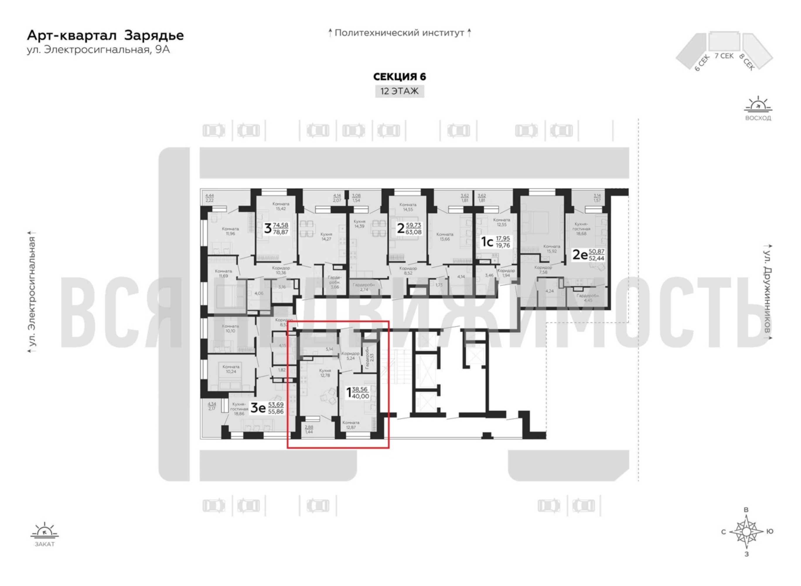 1-комнатная квартира, 40.00 м² 12/25 этаж ID объекта 100076961