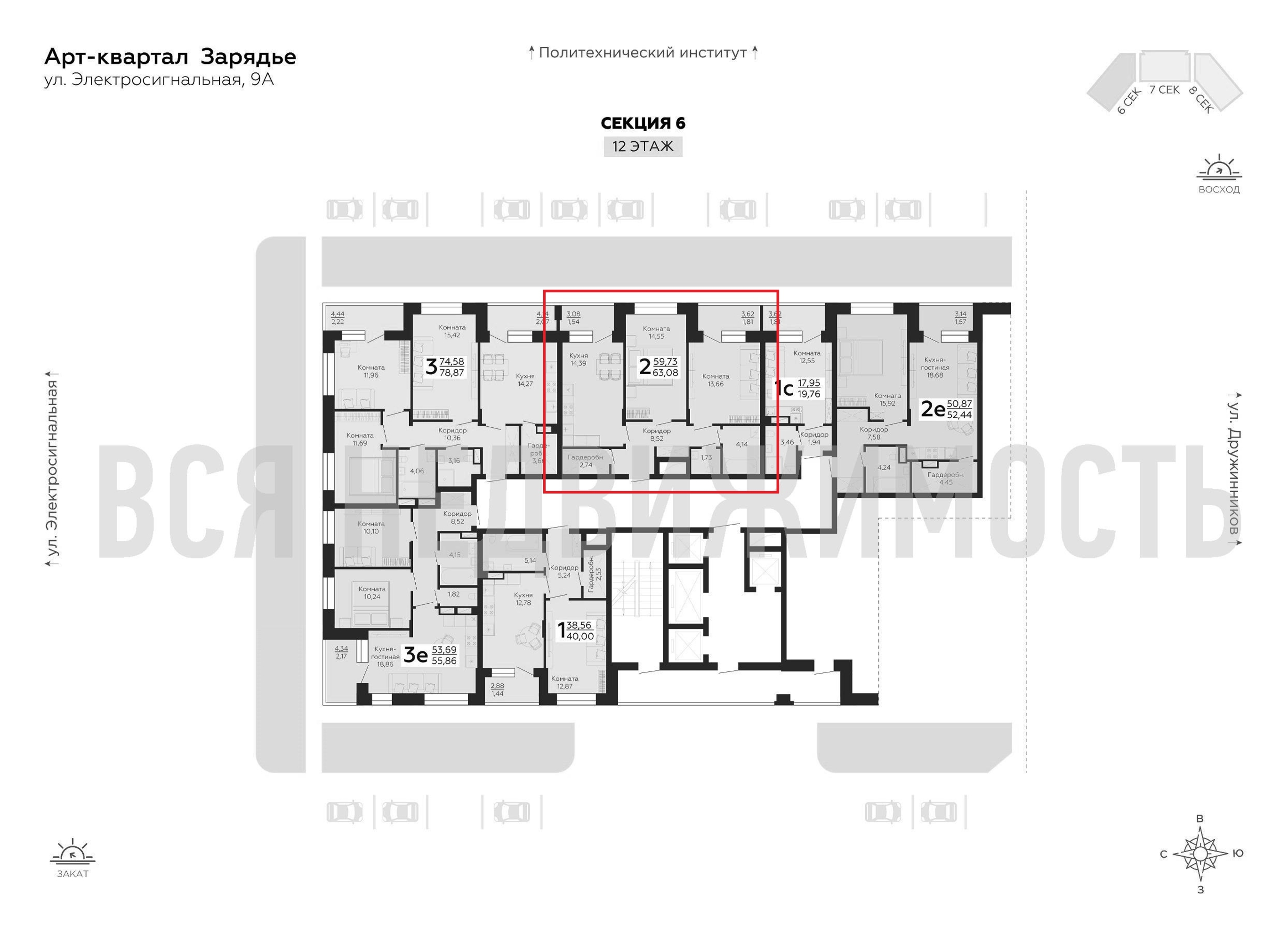 2-комнатная квартира, 63.08 м² 12/25 этаж ID объекта 100076964