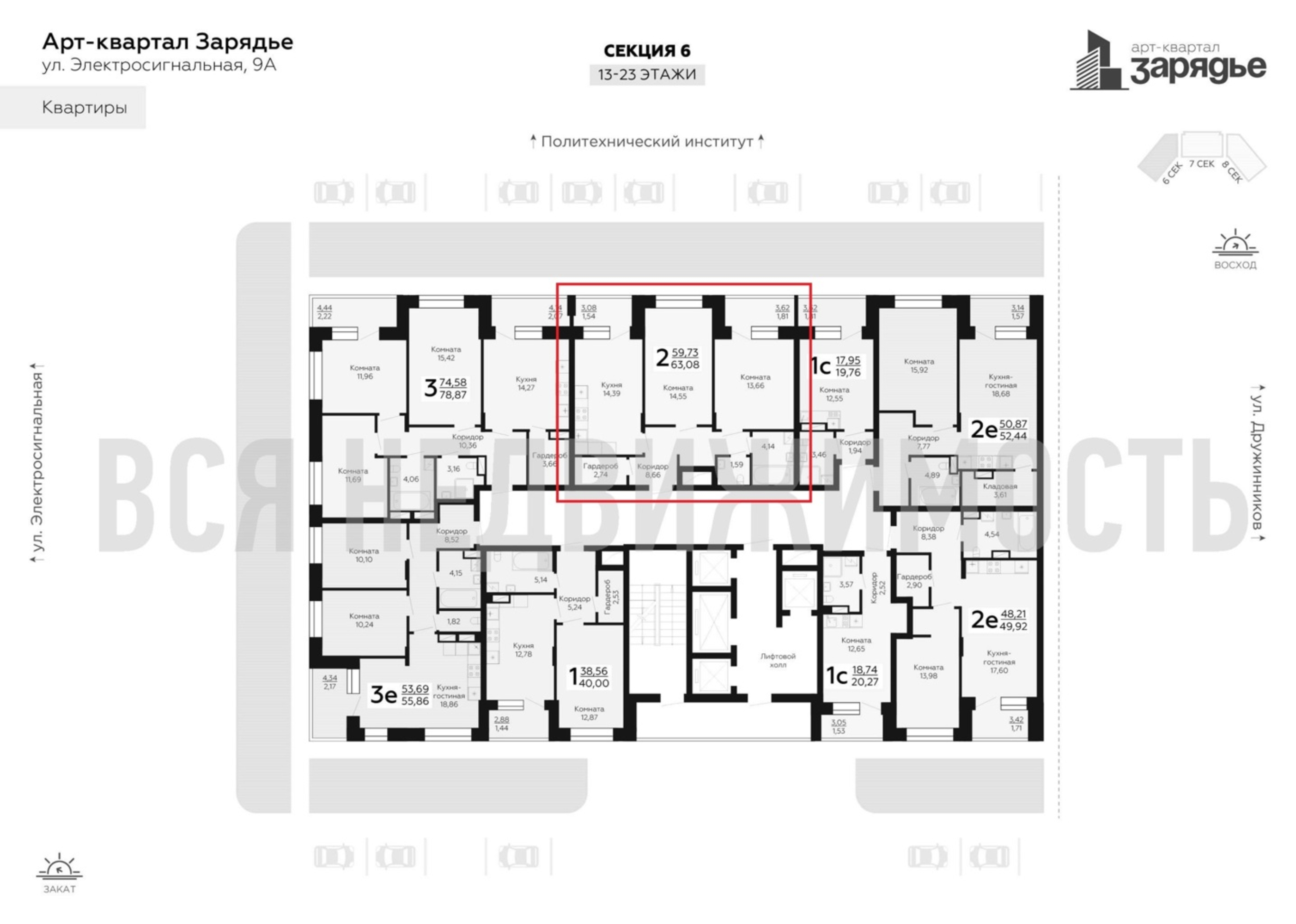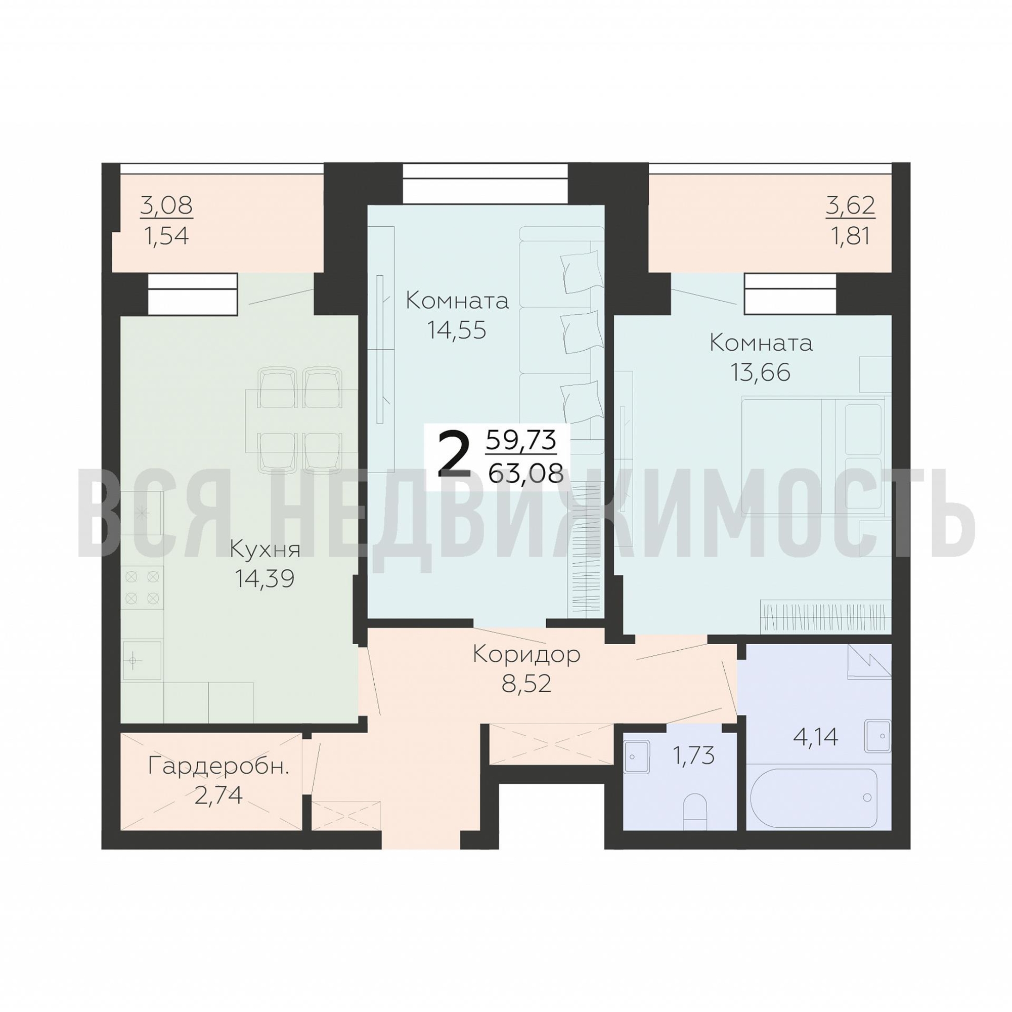 2-комнатная квартира, 63.08 м² 17/25 этаж ID объекта 100077002