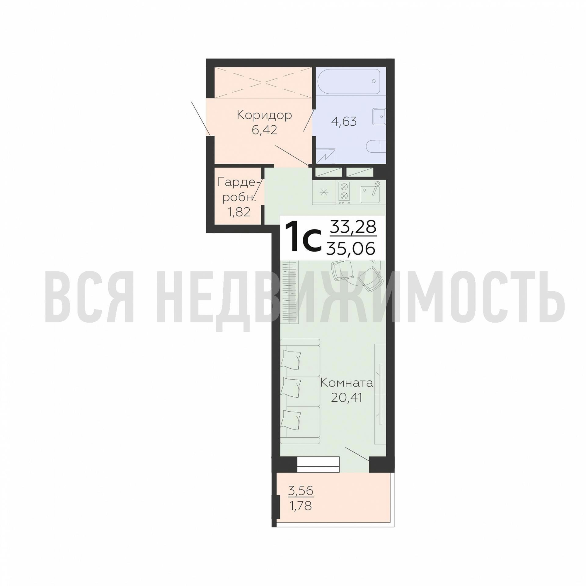 Квартиры-студии, 35.06 м² 6/20 этаж ID объекта 100077064