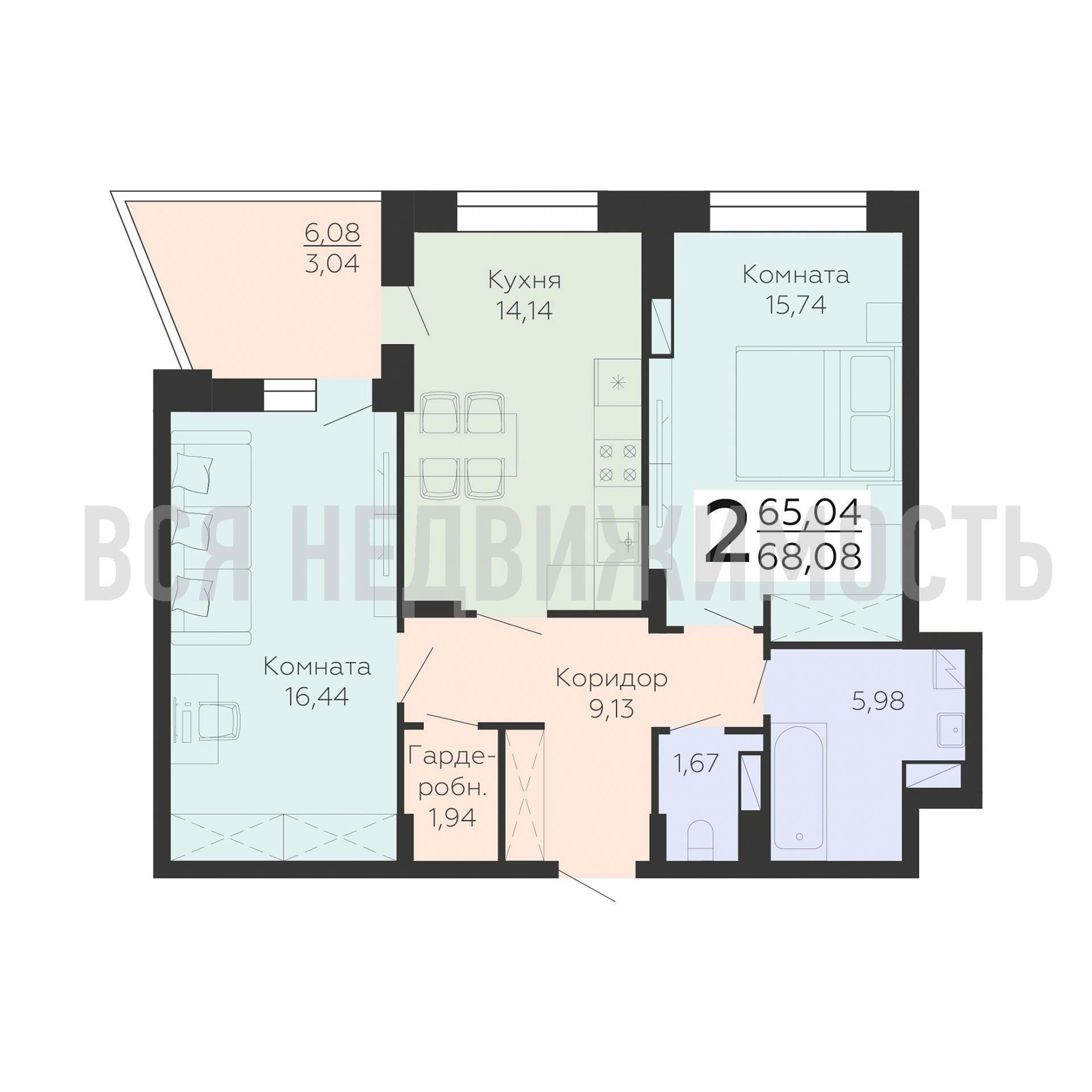 2-комнатная квартира, 68.08 м² 7/20 этаж ID объекта 100077081