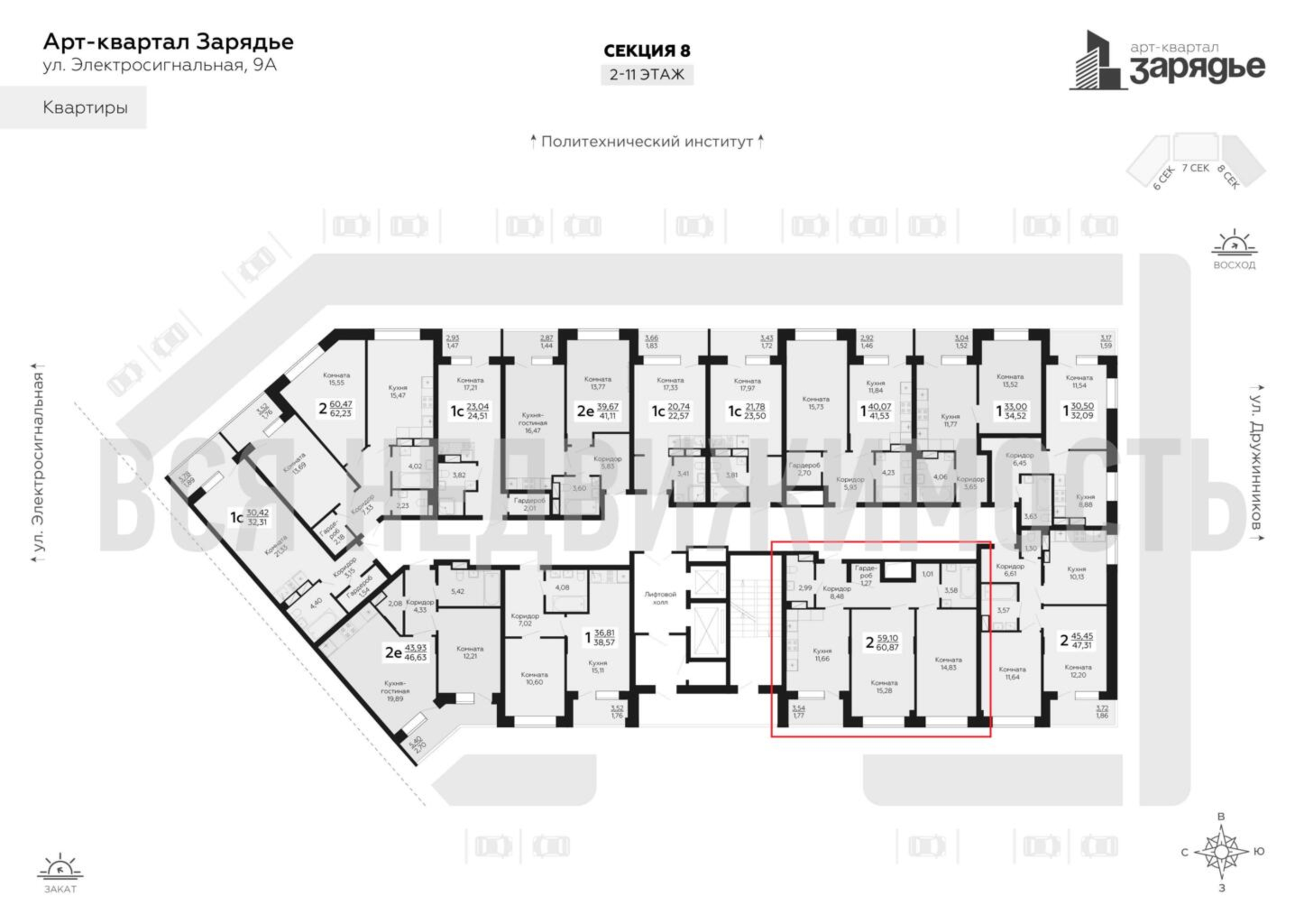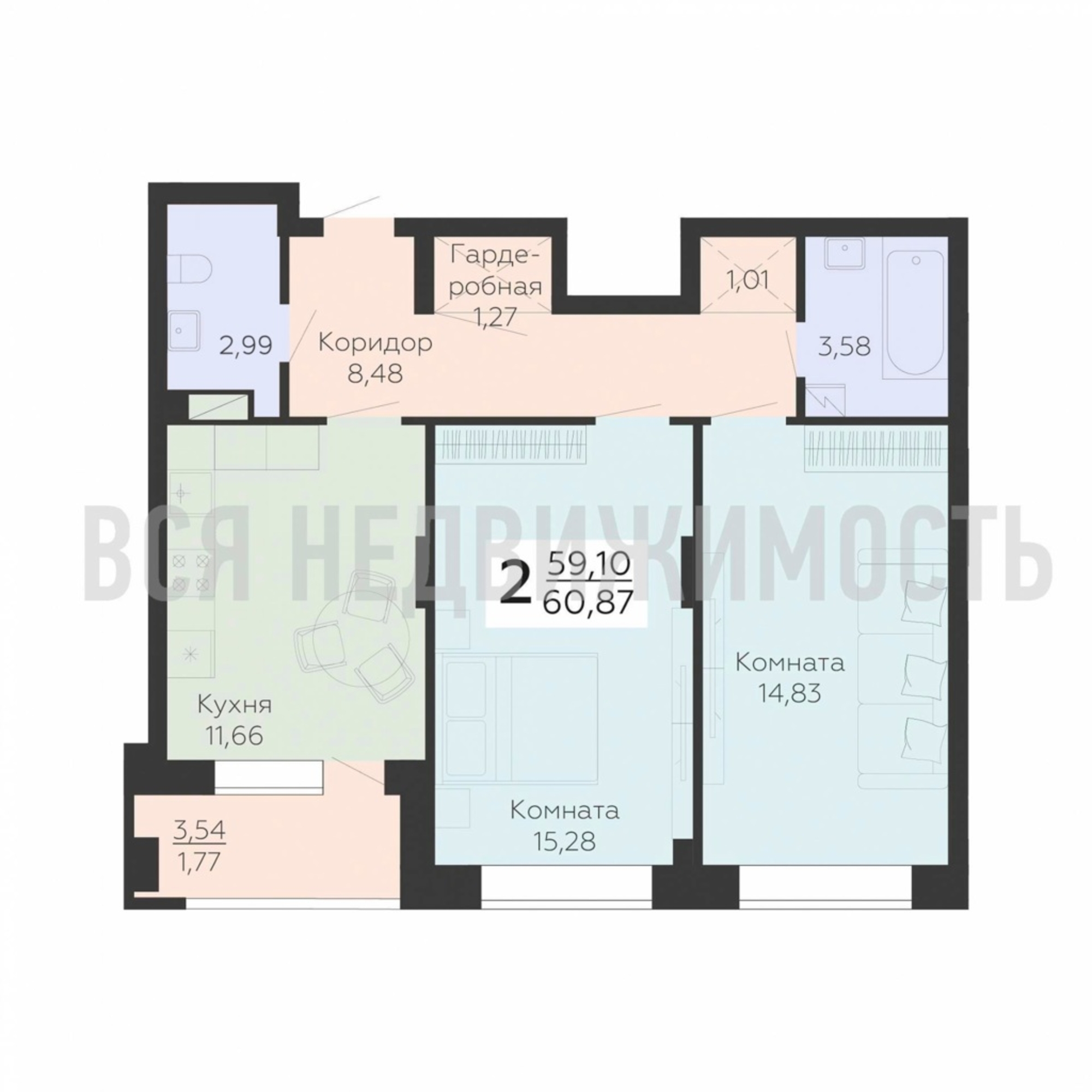 2-комнатная квартира, 60.87 м² 5/13 этаж ID объекта 100077238