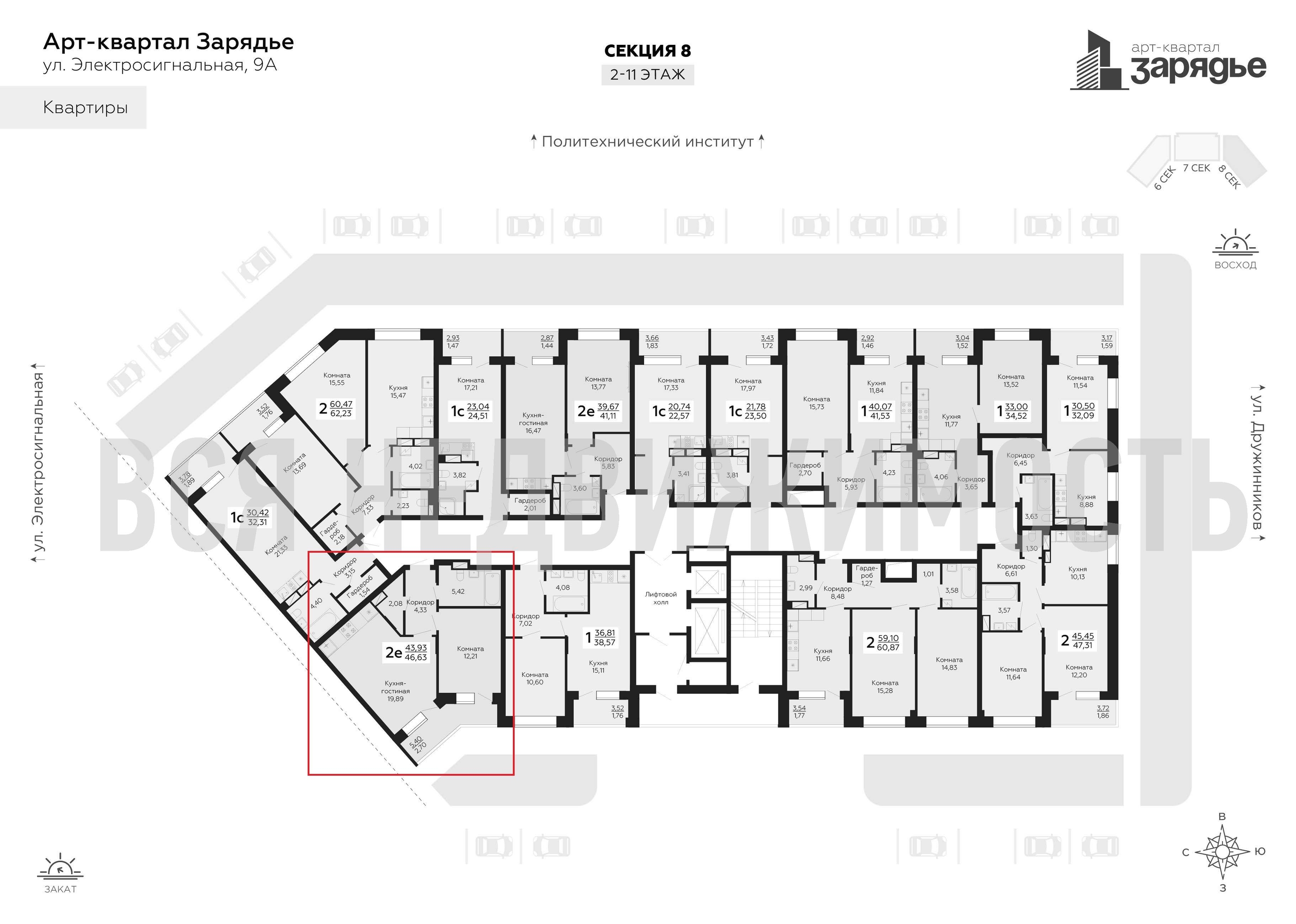 1-комнатная квартира, 46.63 м² 8/13 этаж ID объекта 100077266