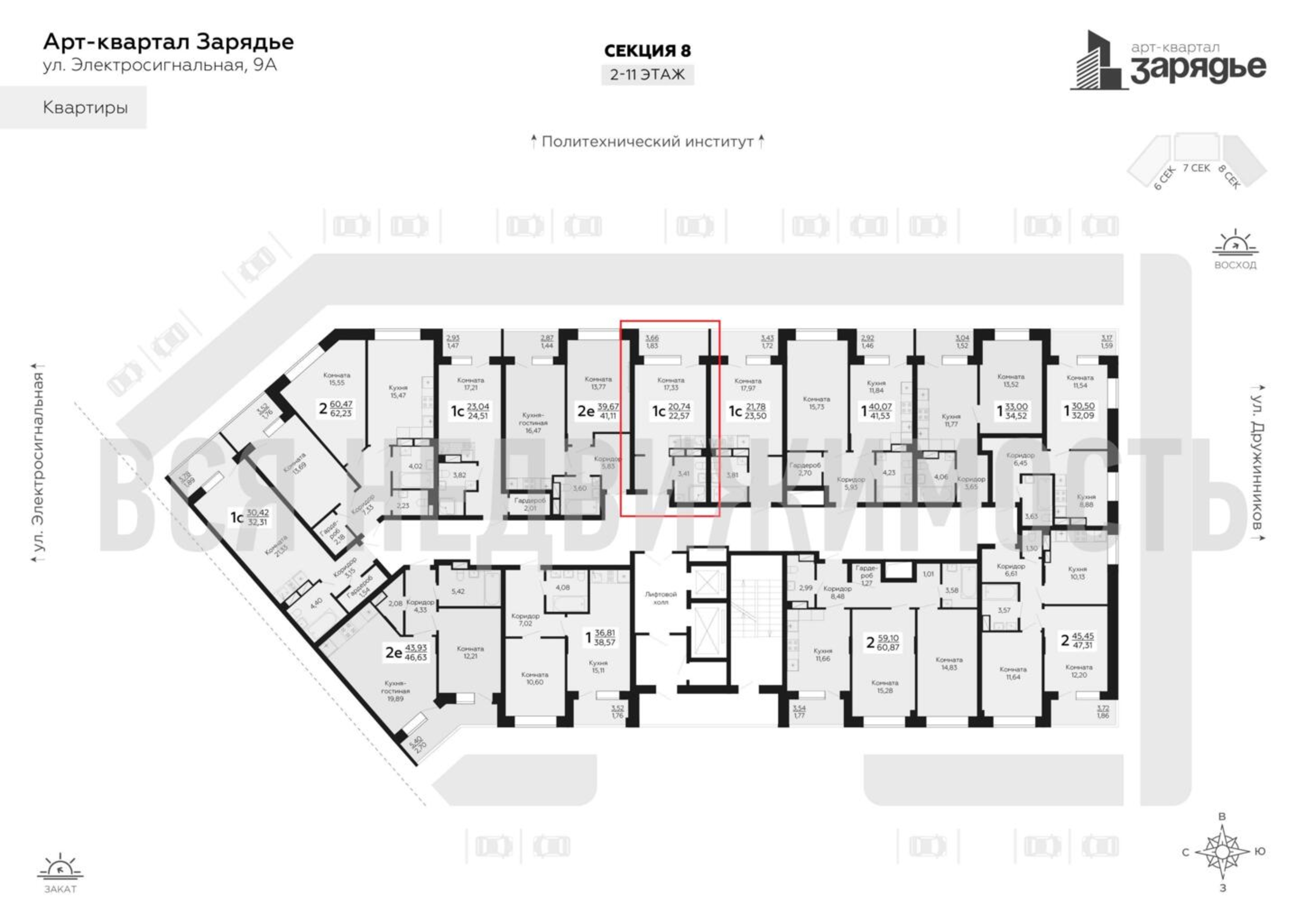 Квартиры-студии, 22.57 м² 11/13 этаж ID объекта 100077310