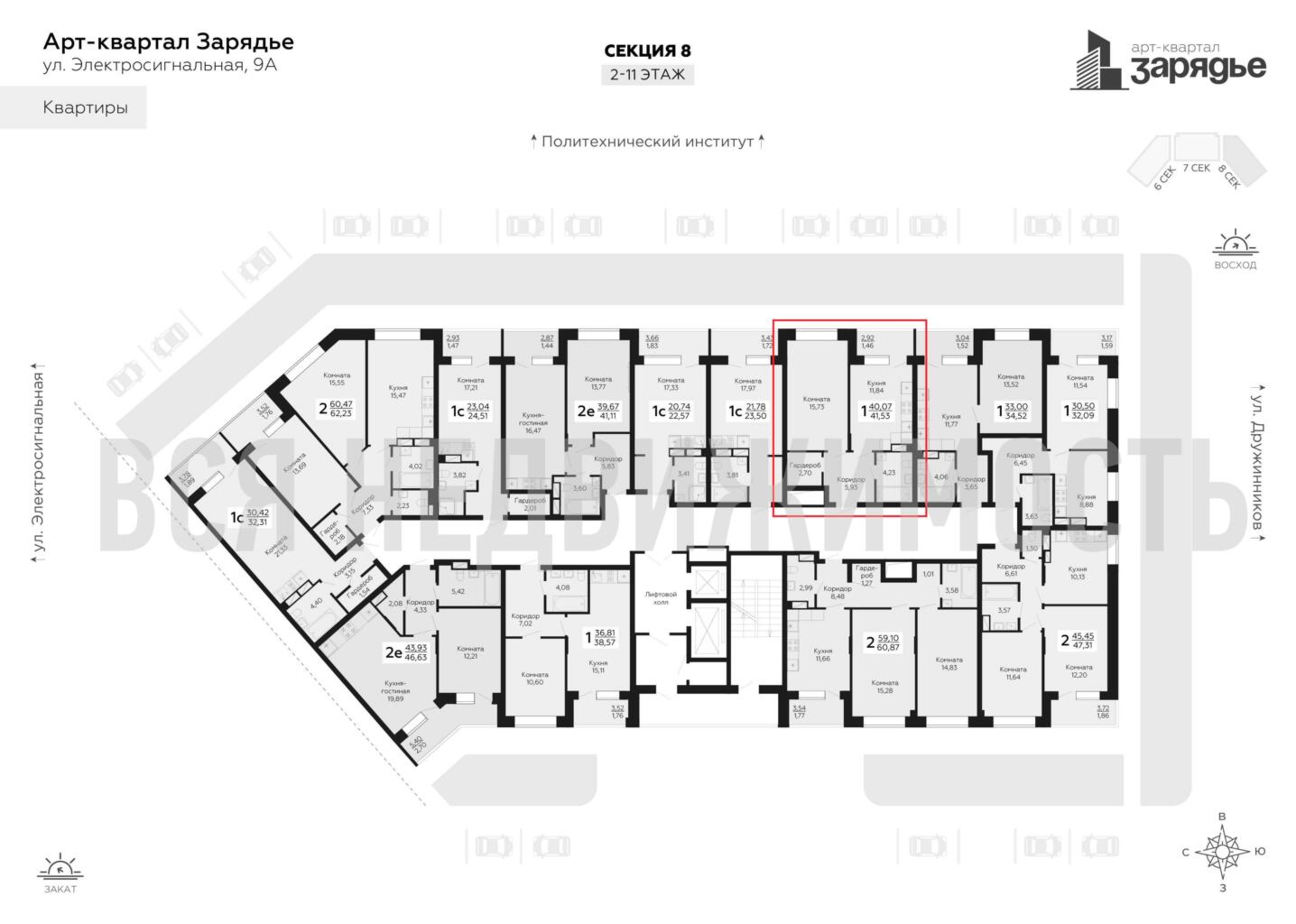 1-комнатная квартира, 41.53 м² 11/13 этаж ID объекта 100077312