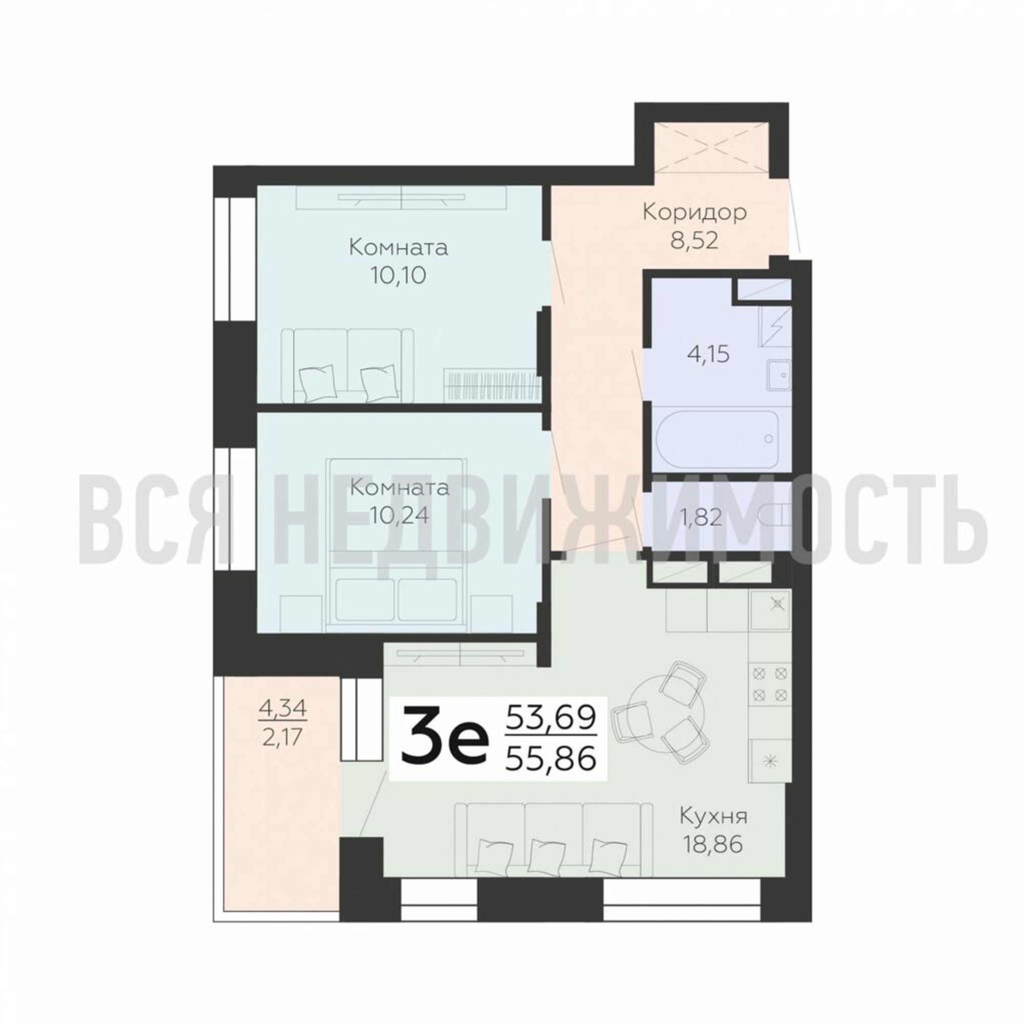 2-комнатная квартира, 55.86 м² 22/25 этаж ID объекта 100077343