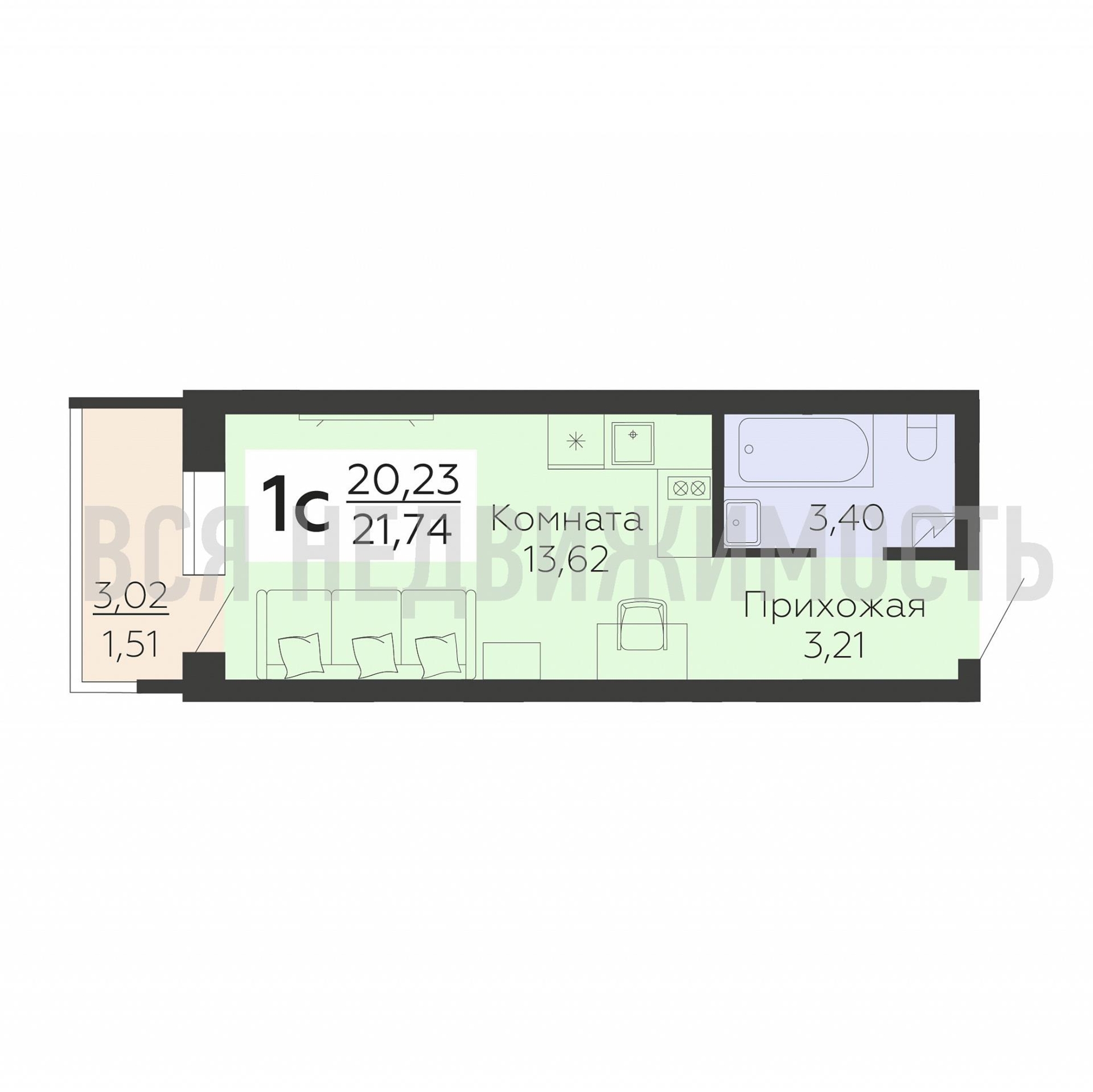 Строительная площадь21.74 м²