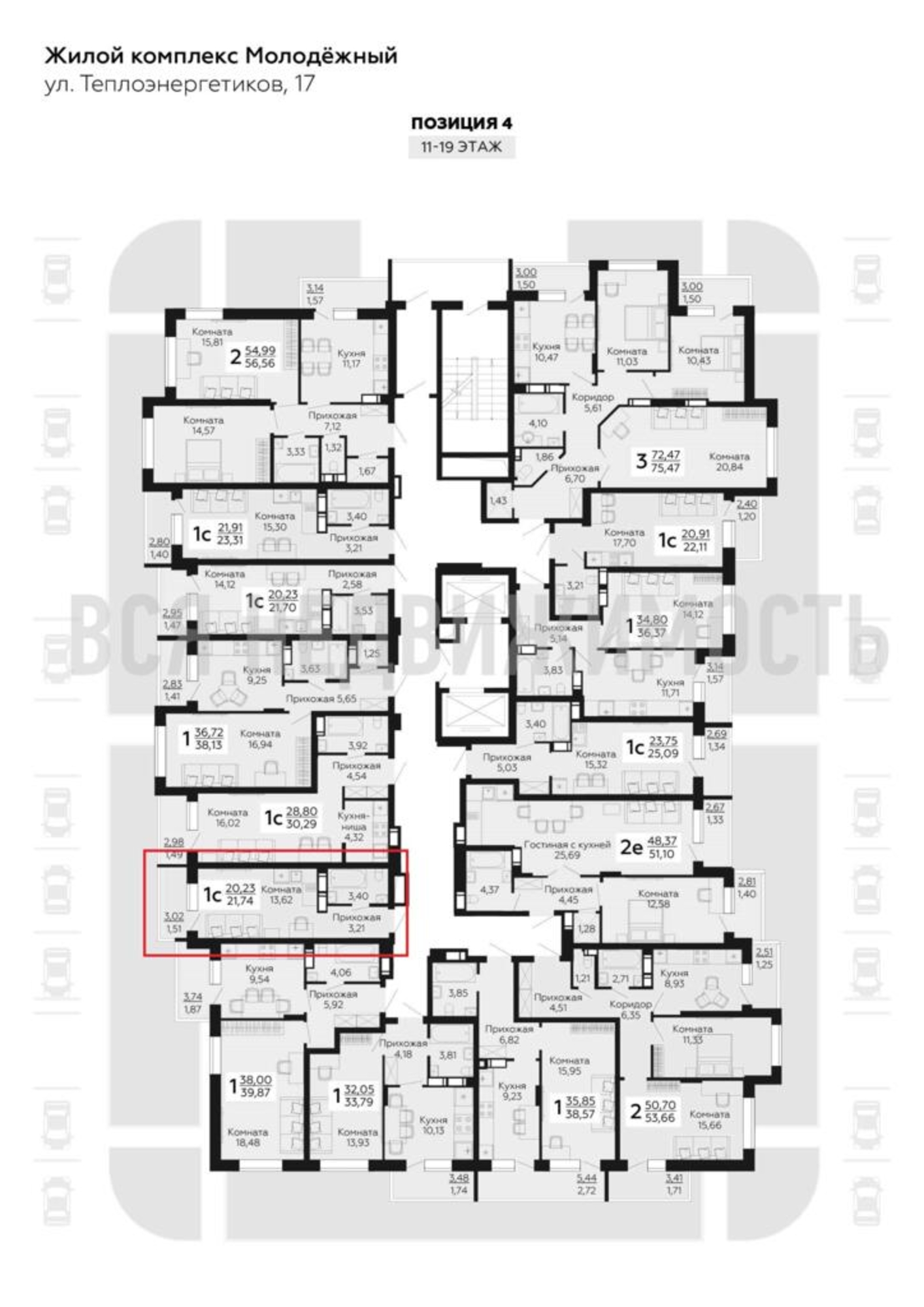 Квартиры-студии, 21.74 м² 14/19 этаж ID объекта 100077482