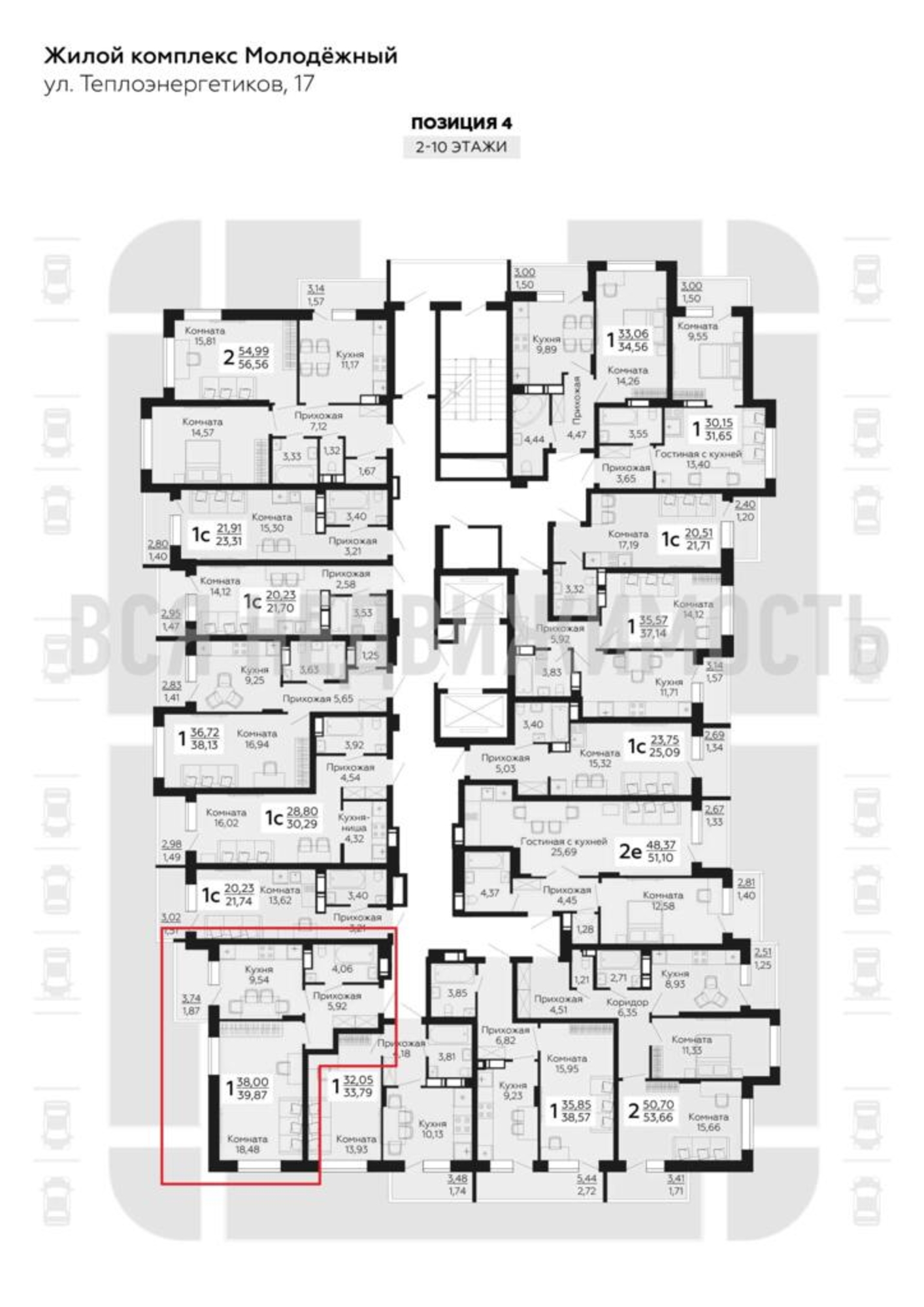 1-комнатная квартира, 39.87 м² 5/19 этаж ID объекта 100077680