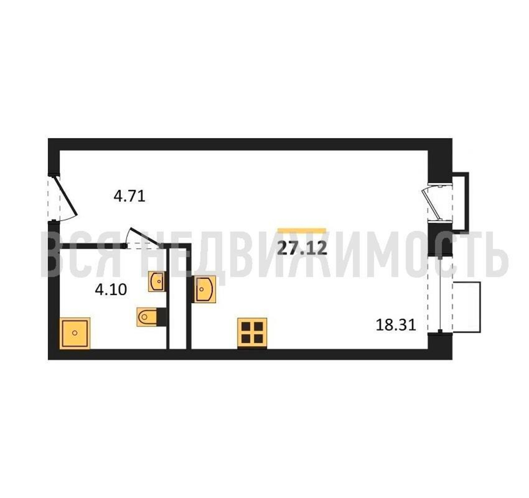Квартиры-студии, 27.12 м² 15/19 этаж ID объекта 100077927