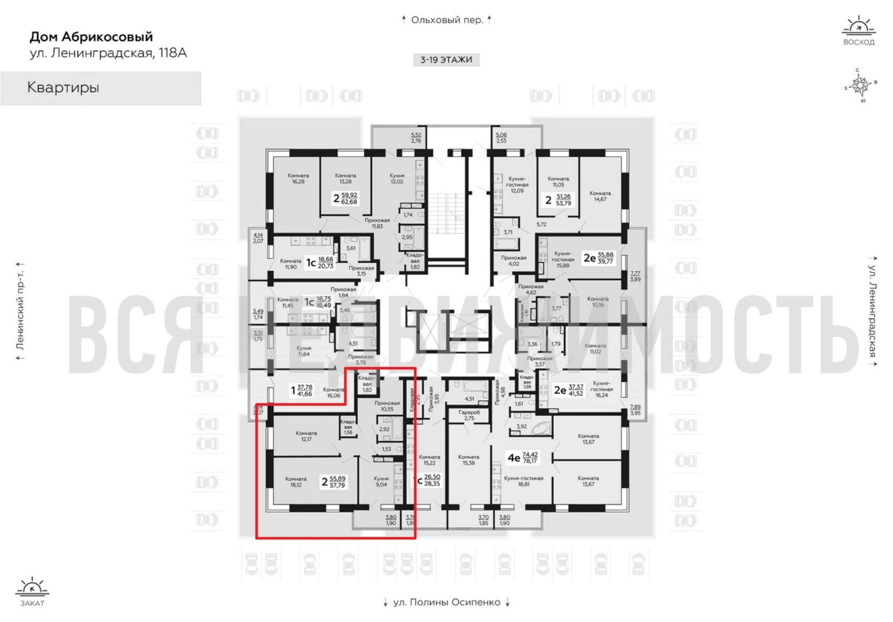 2-комнатная квартира, 57.79 м² 19/19 этаж ID объекта 100078329