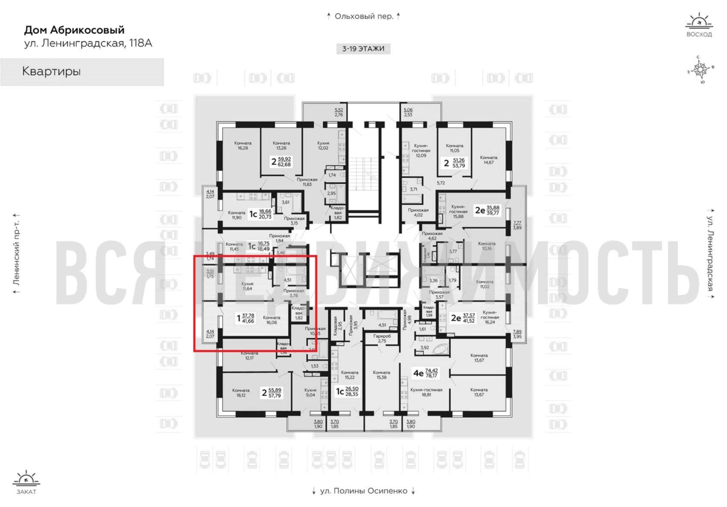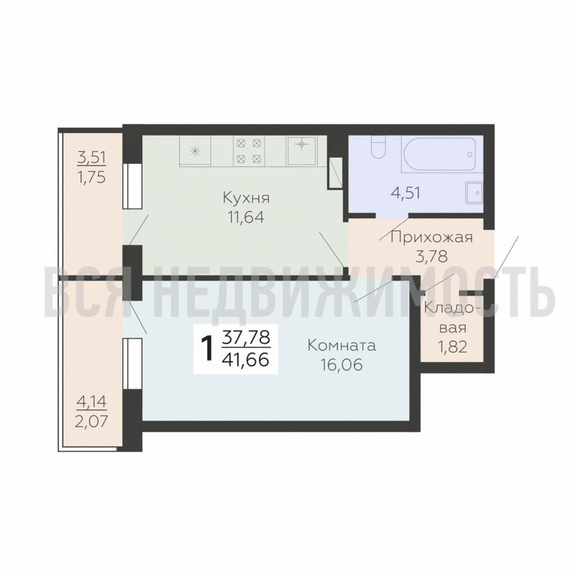 1-комнатная квартира, 41.66 м² 19/19 этаж ID объекта 100078330