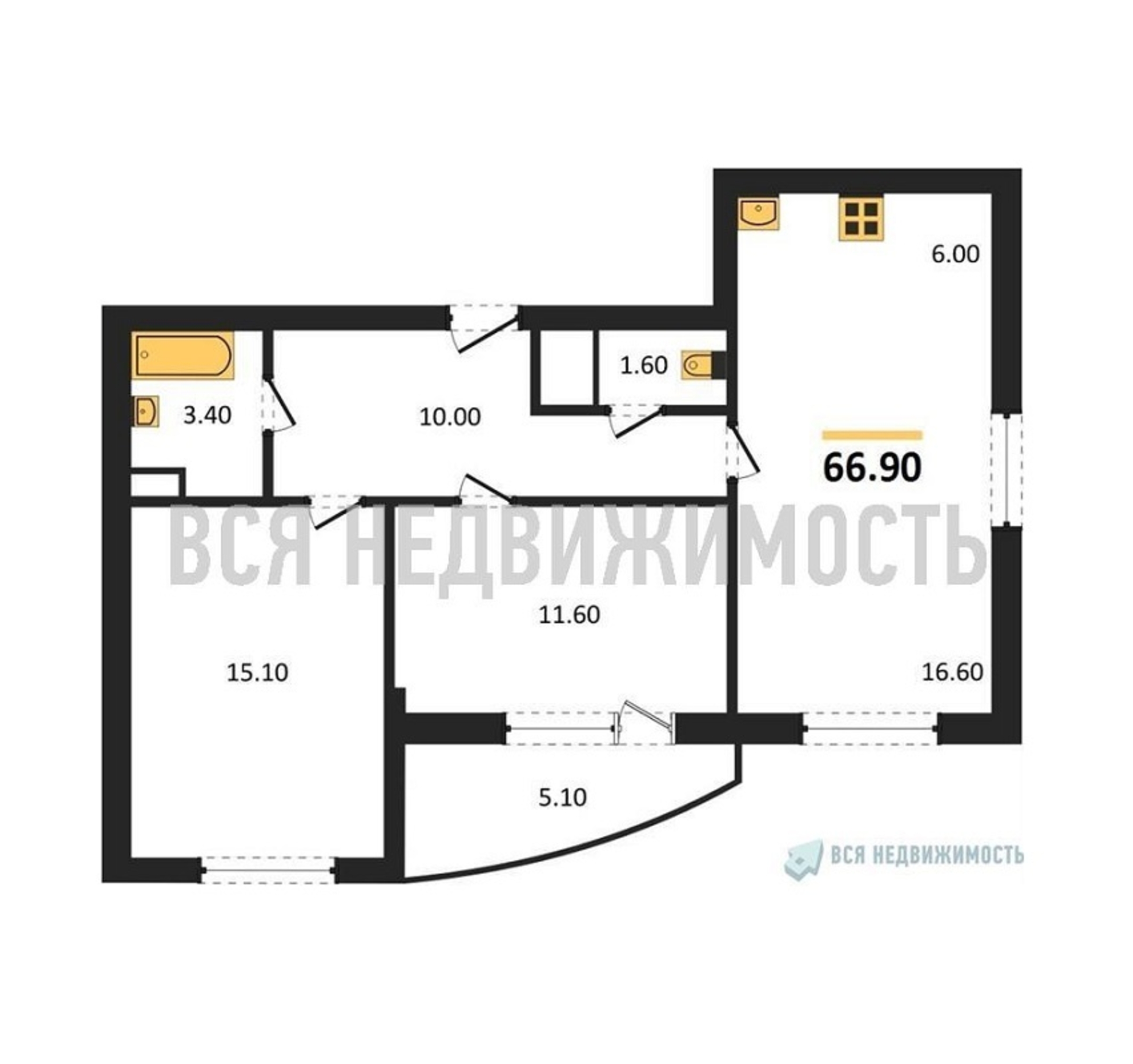 Строительная площадь66.90 м²