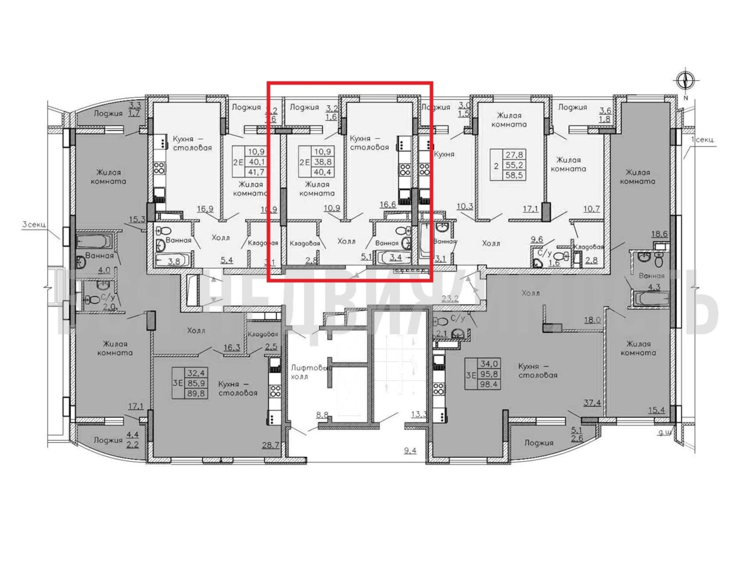 1-комнатная квартира, 40.40 м² 2/18 этаж ID объекта 100078581