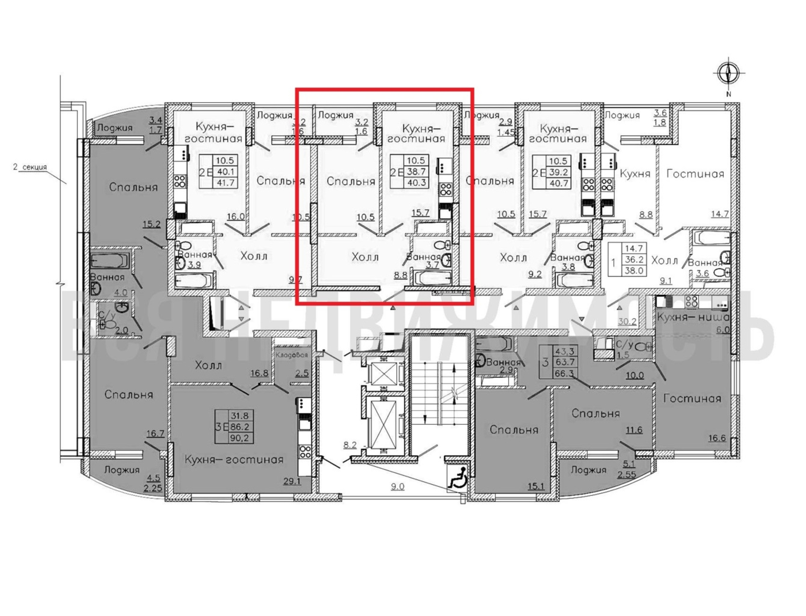 1-комнатная квартира, 40.30 м² 13/18 этаж ID объекта 100078654
